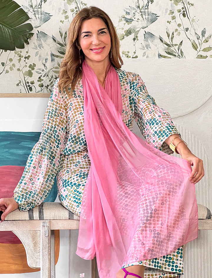 Pañuelo de seda paisaje rosa