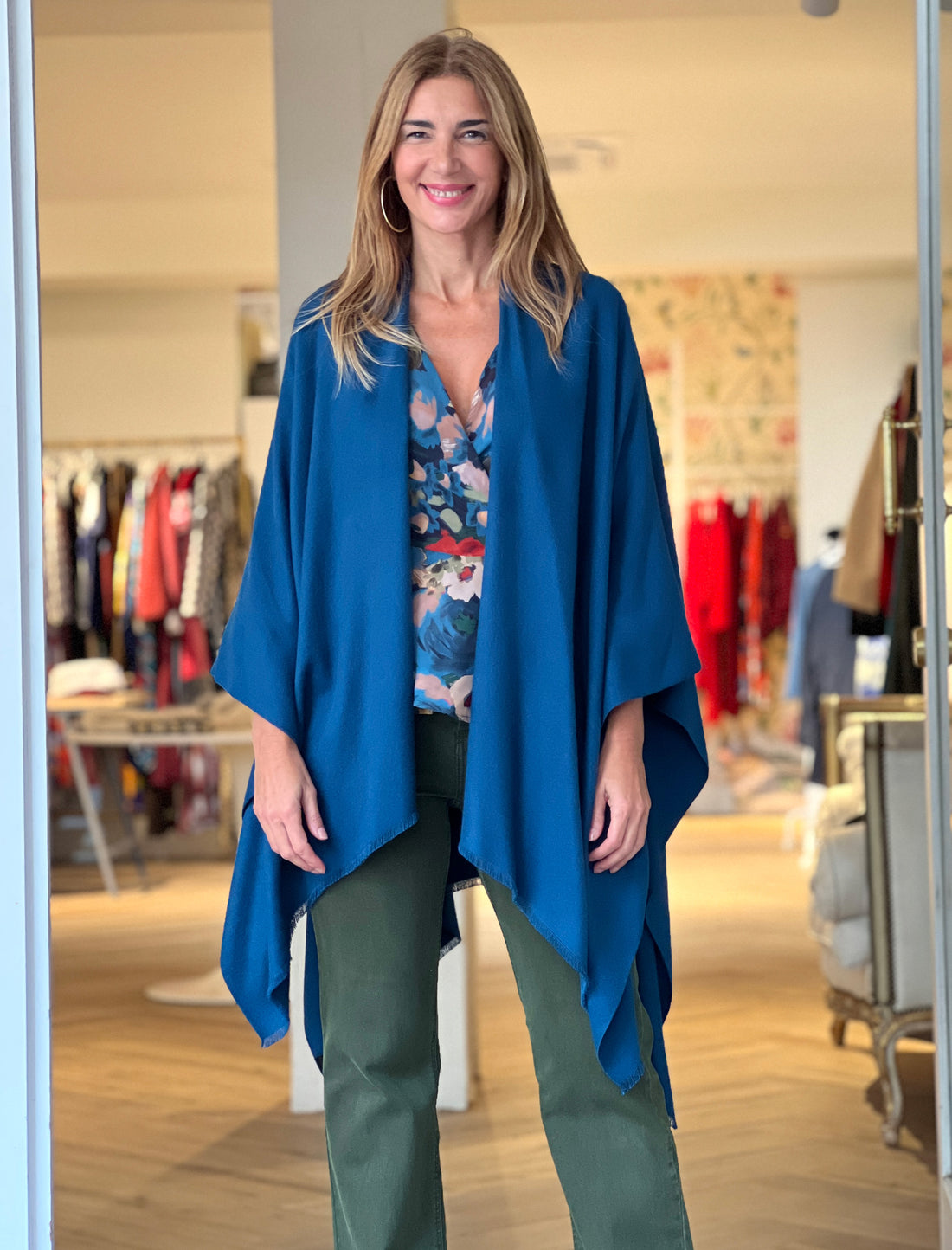 Un chal, capa o foulard, puede sustituir la chaqueta de mujer o dar el toque final a un look con blusa y pantalón. Ideal para entretiempo o para completar estilismos con una nota de estilo.