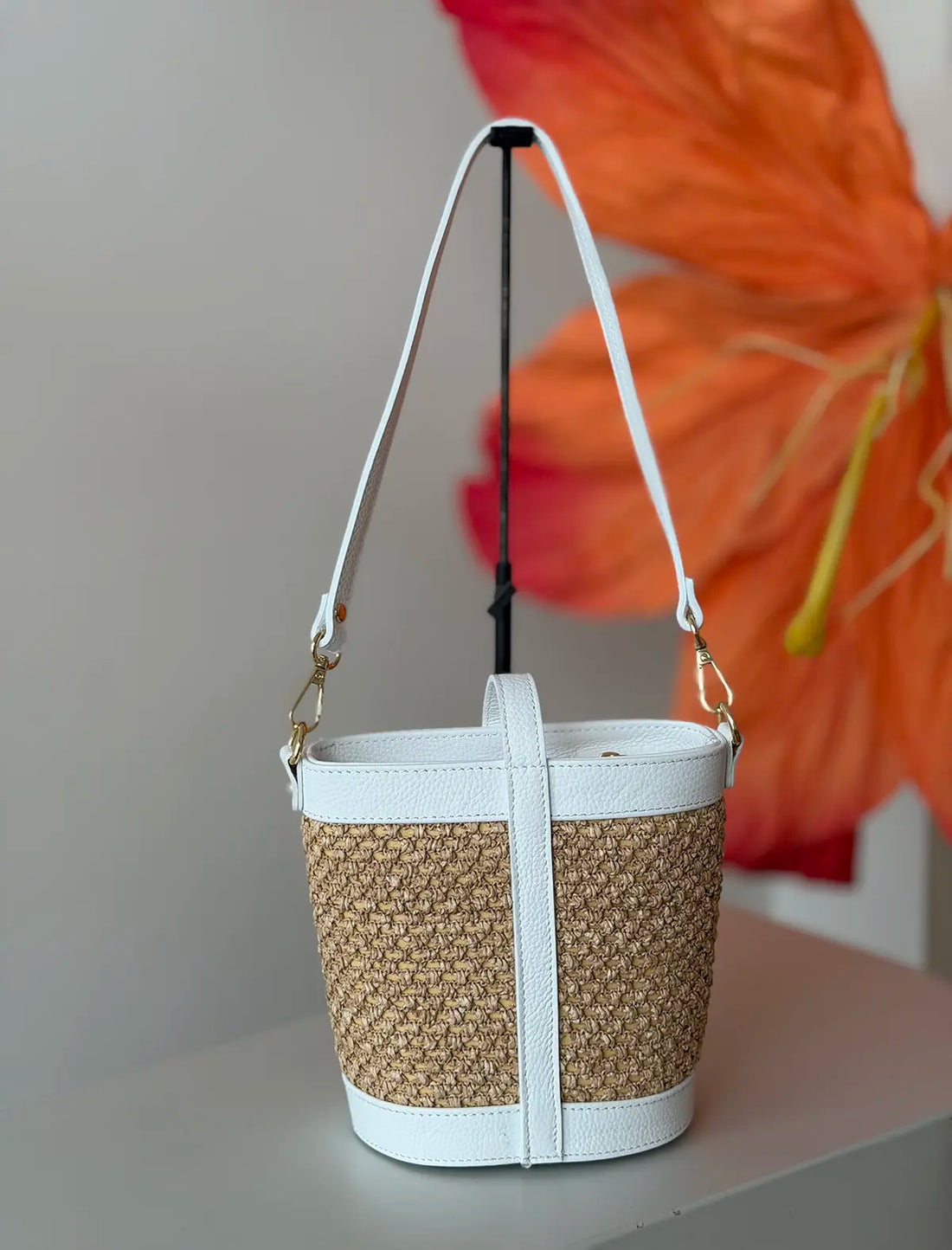 Bolso cesta natural blanco