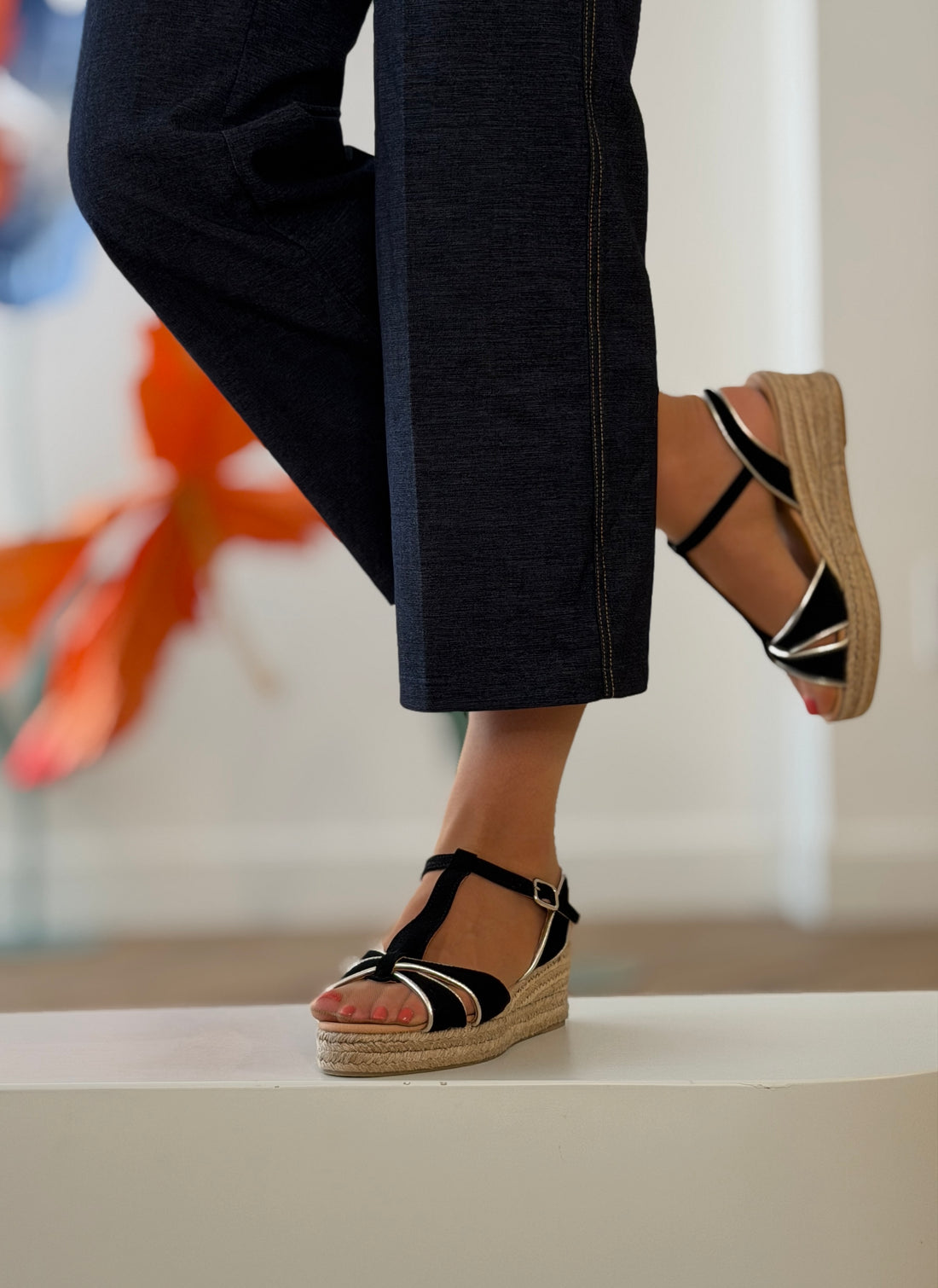Alpargata de Cuña Sandalia Palma negro