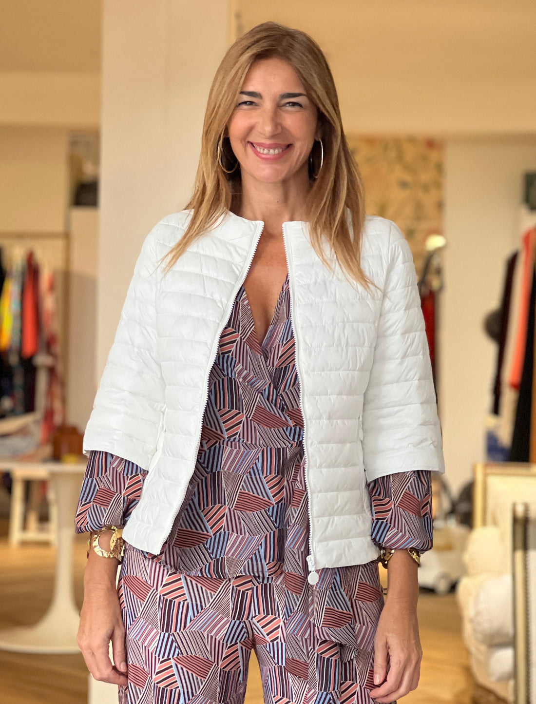 La chaqueta cruzada punto chic marino es un fondo de armario magnífico, con falda, con pantalón o con vaqueros queda estupenda y muy juvenil. Como siempre las prendas de Nuria Cobo no defraudan.