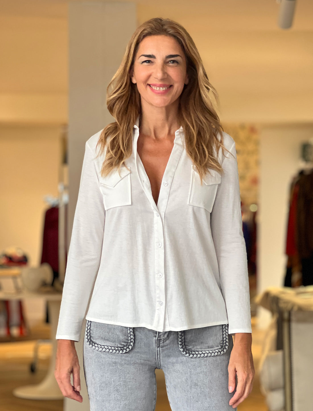 Cuellos estructurados, cuello mao, botones cubiertos o vuelos ligeros en las mangas: esos detalles añadidos convierten una blusa básica en una prenda especial. Todo sin caer en la ostentación, manteniendo siempre el estilo sobrio y elegante.