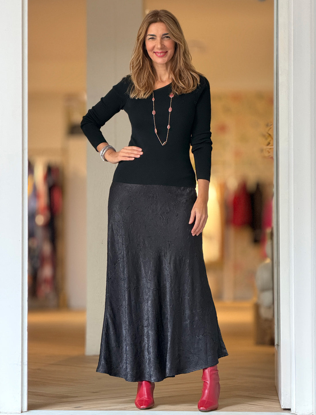 - Con botas: una falda fluida y unas botas altas son una combinación otoñal que siempre suma.