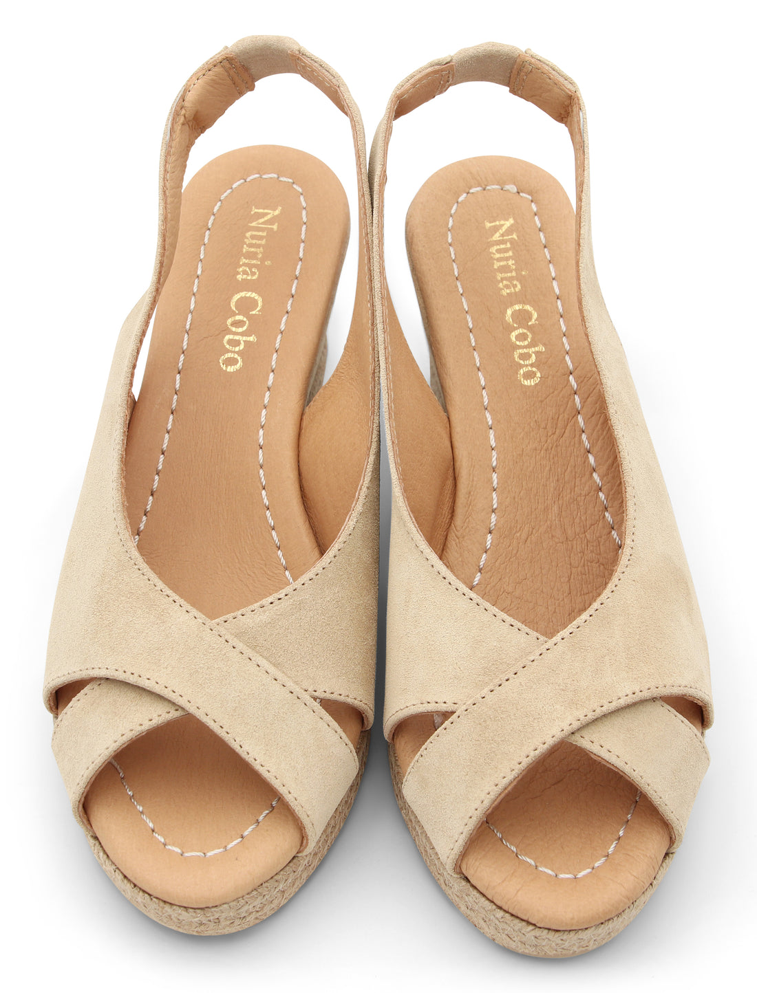Alpargata de cuña piel puntera cruzada Provenza beig