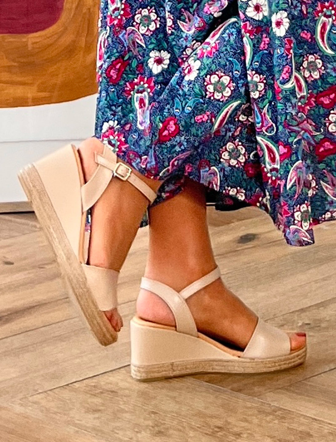 Alpargata de cuña piel puntera cruzada Provenza beig