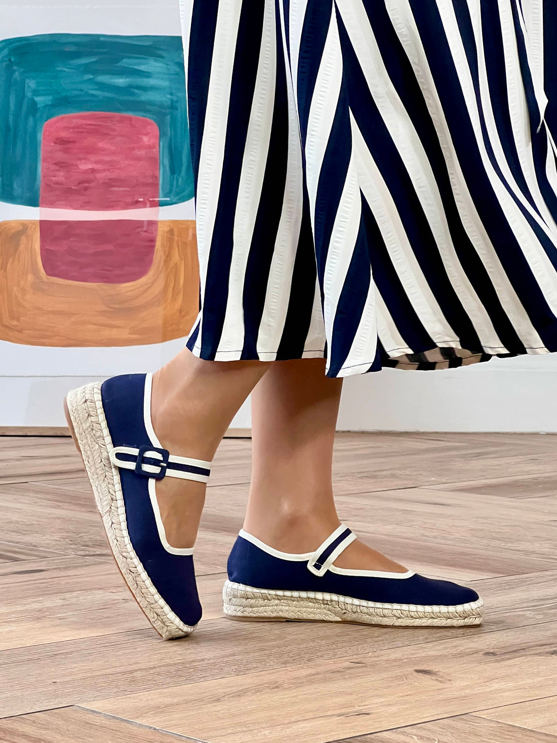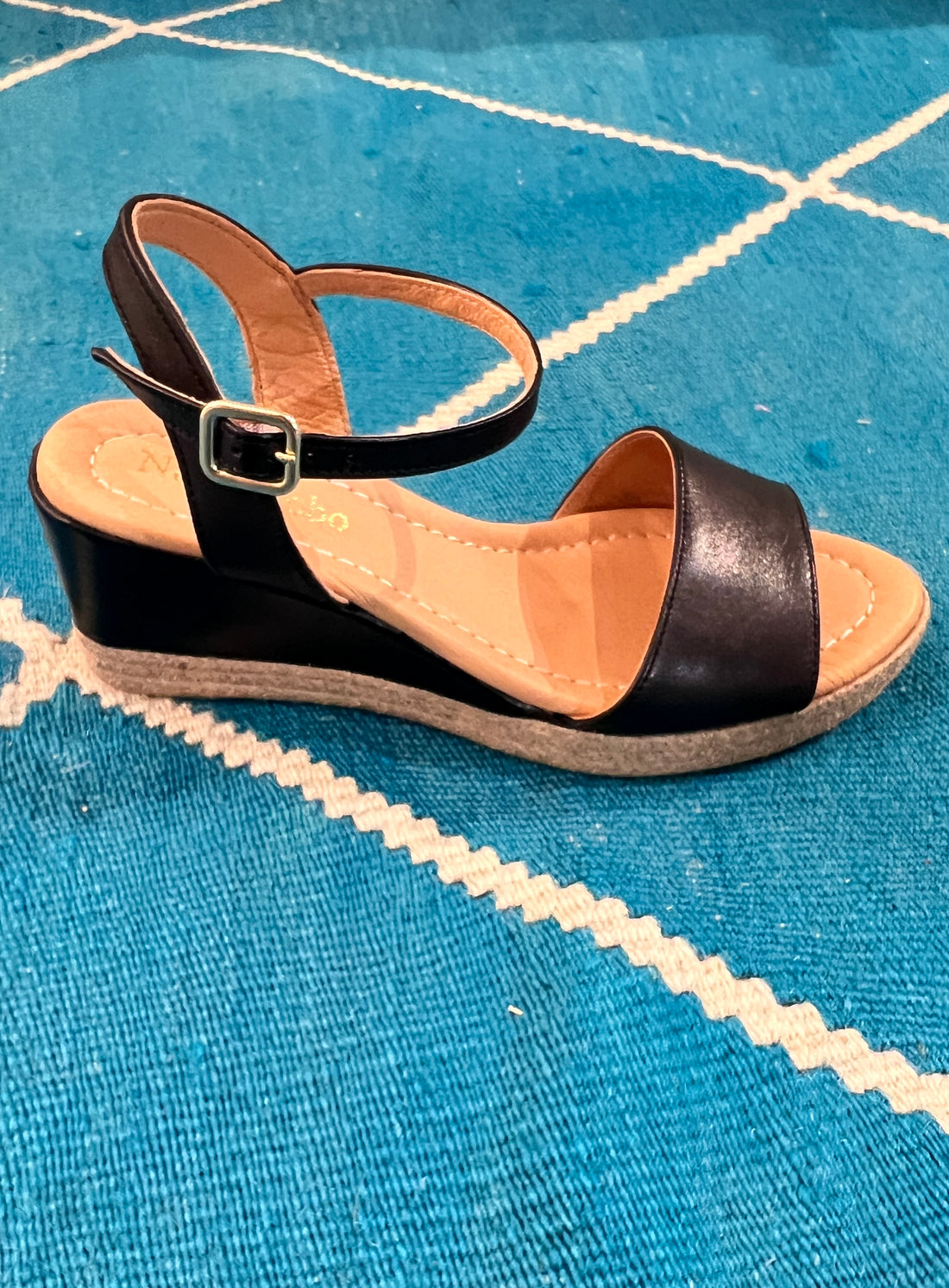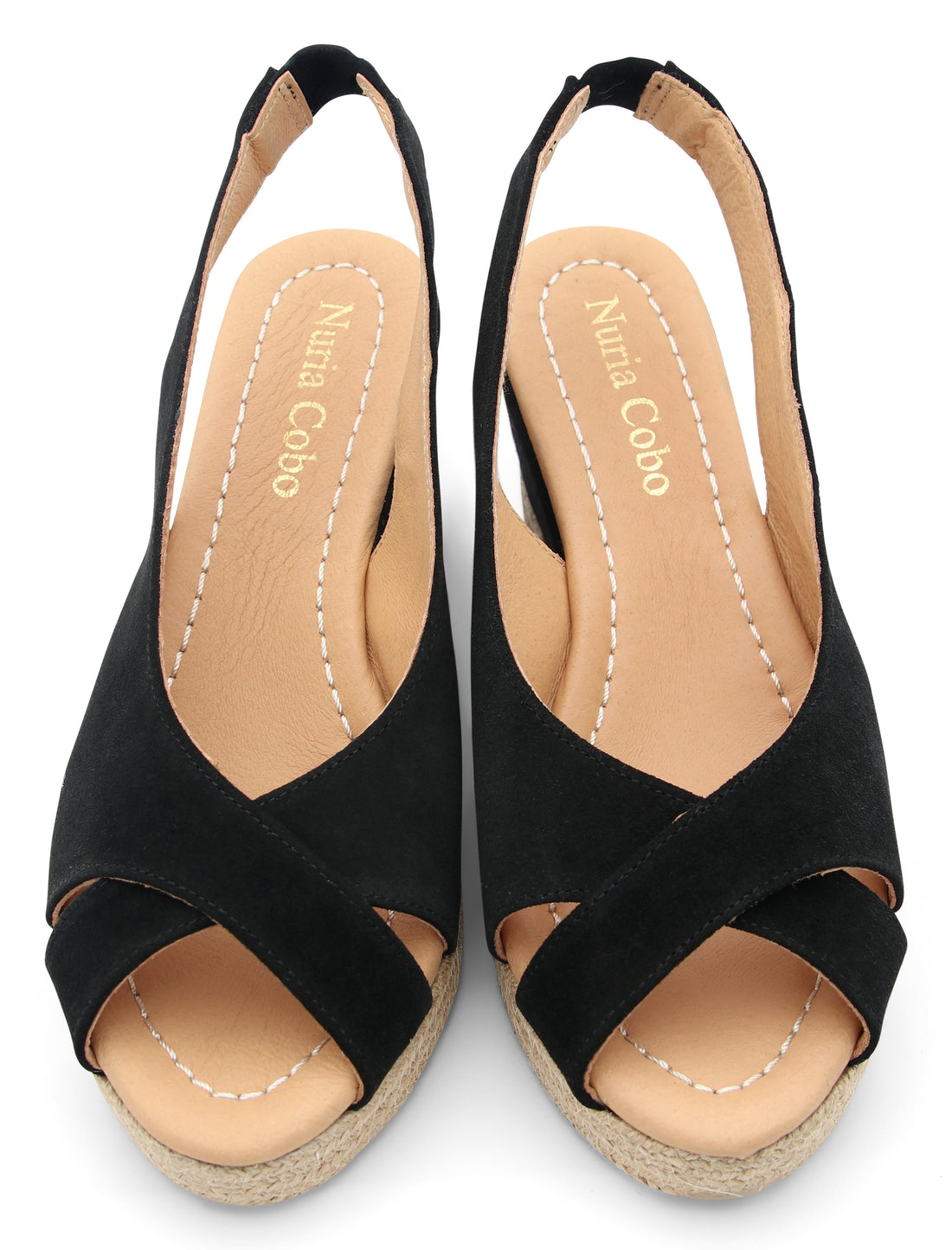 Alpargata de cuña piel puntera cruzada Provenza negro
