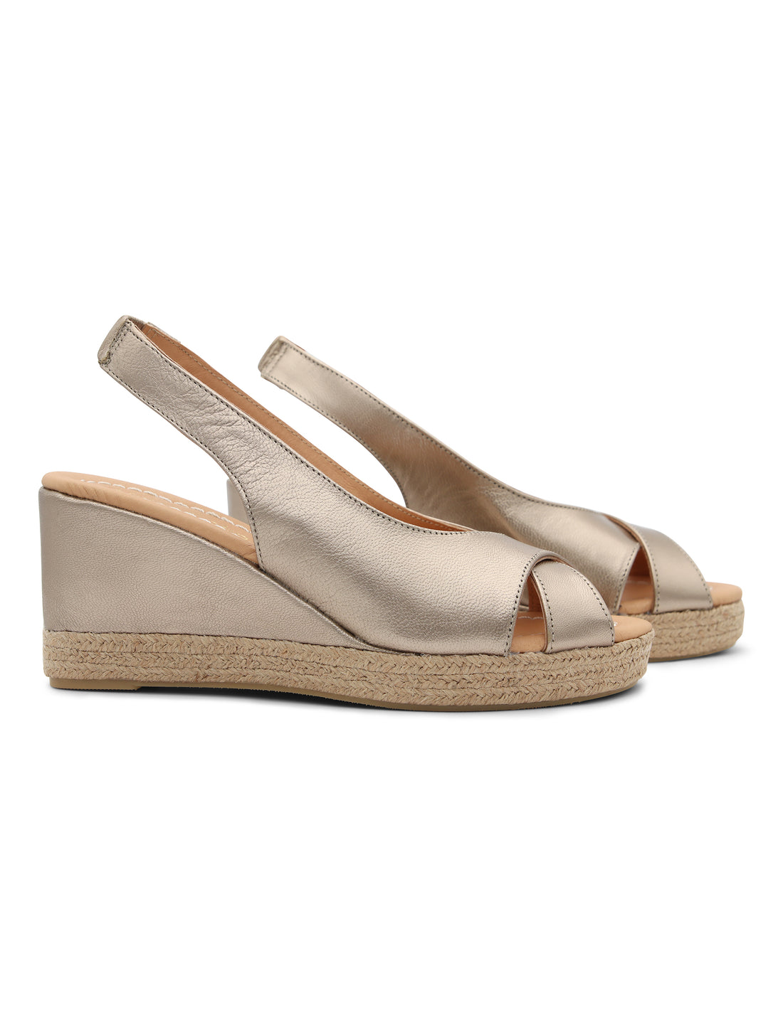 Alpargata de cuña piel puntera cruzada Provenza oro