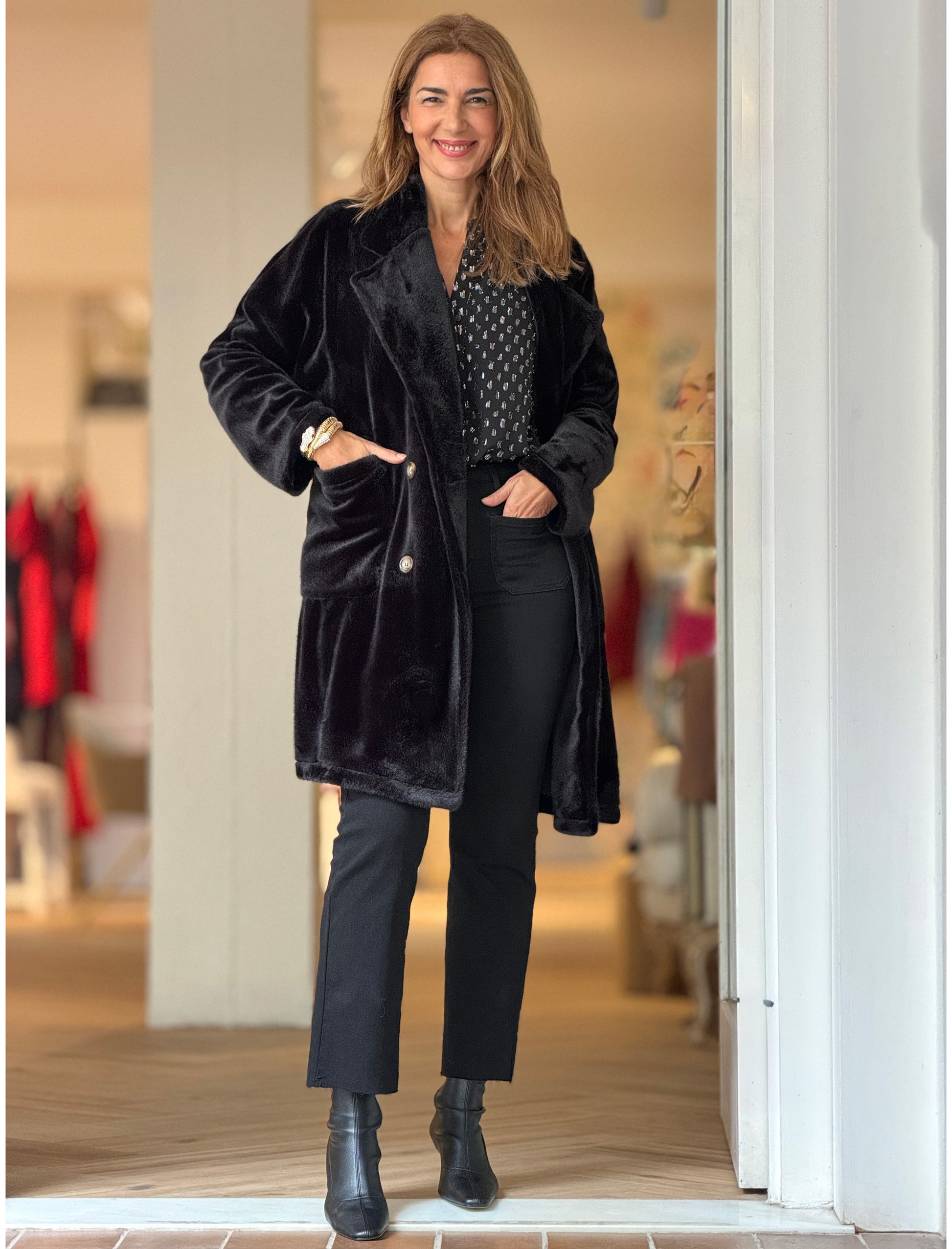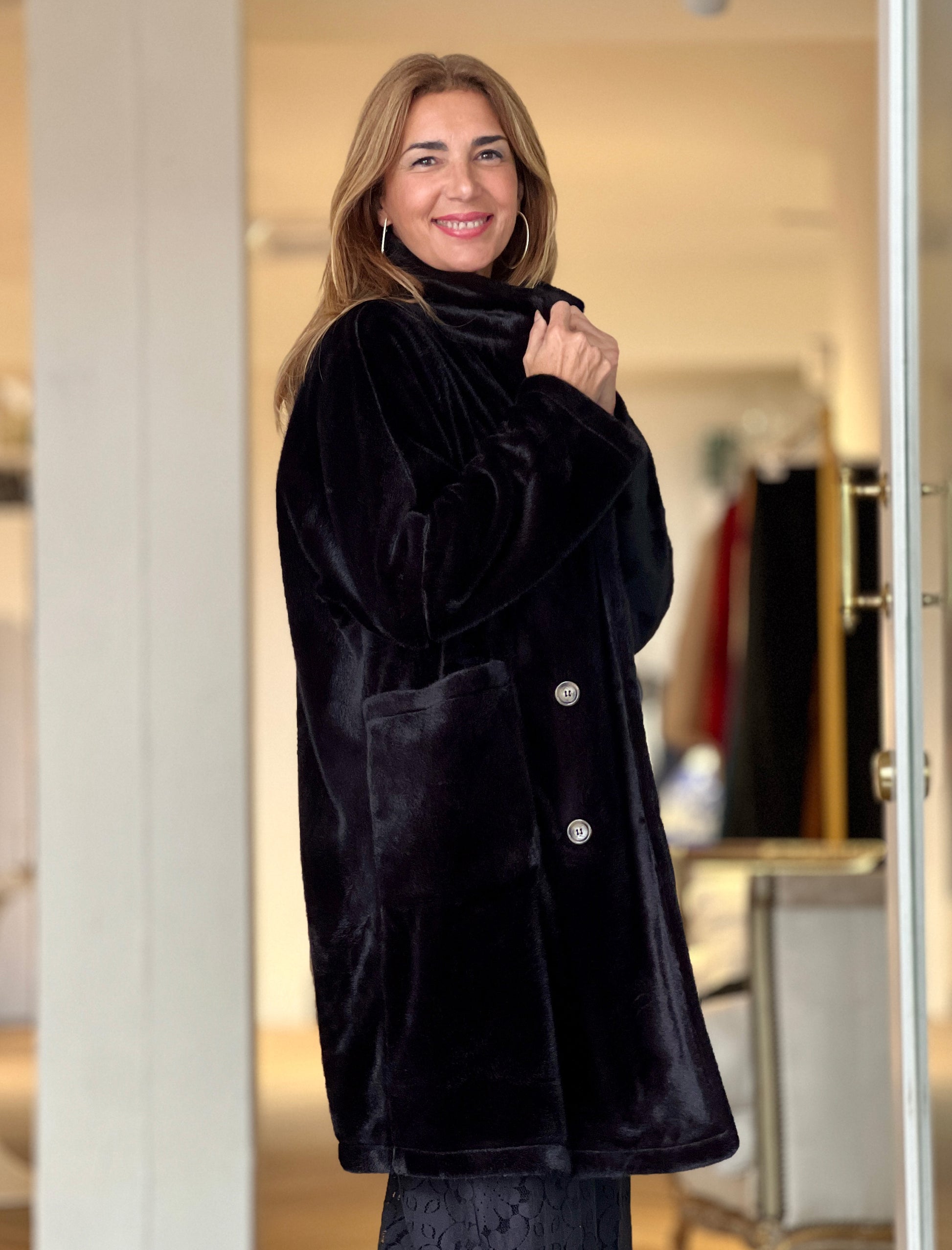 El Abrigo de Pelo Suave presenta un tacto ultrasuave que ofrece una sensación envolvente y muy agradable y combina con absolutamente todo. El diseño recto y ligero lo convierte en un abrigo cómodo para el día a día. Además, cuenta con bolsillos laterales y un acabado de efecto peluche que lo hace irresistible.