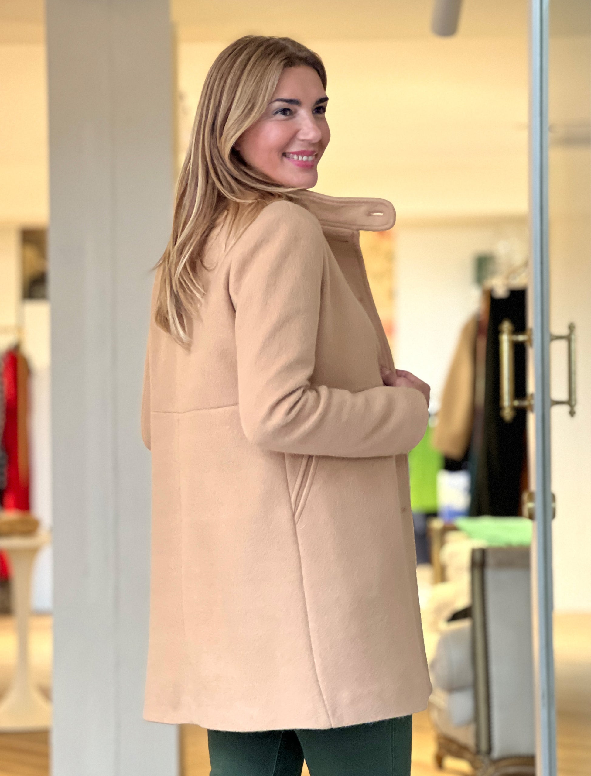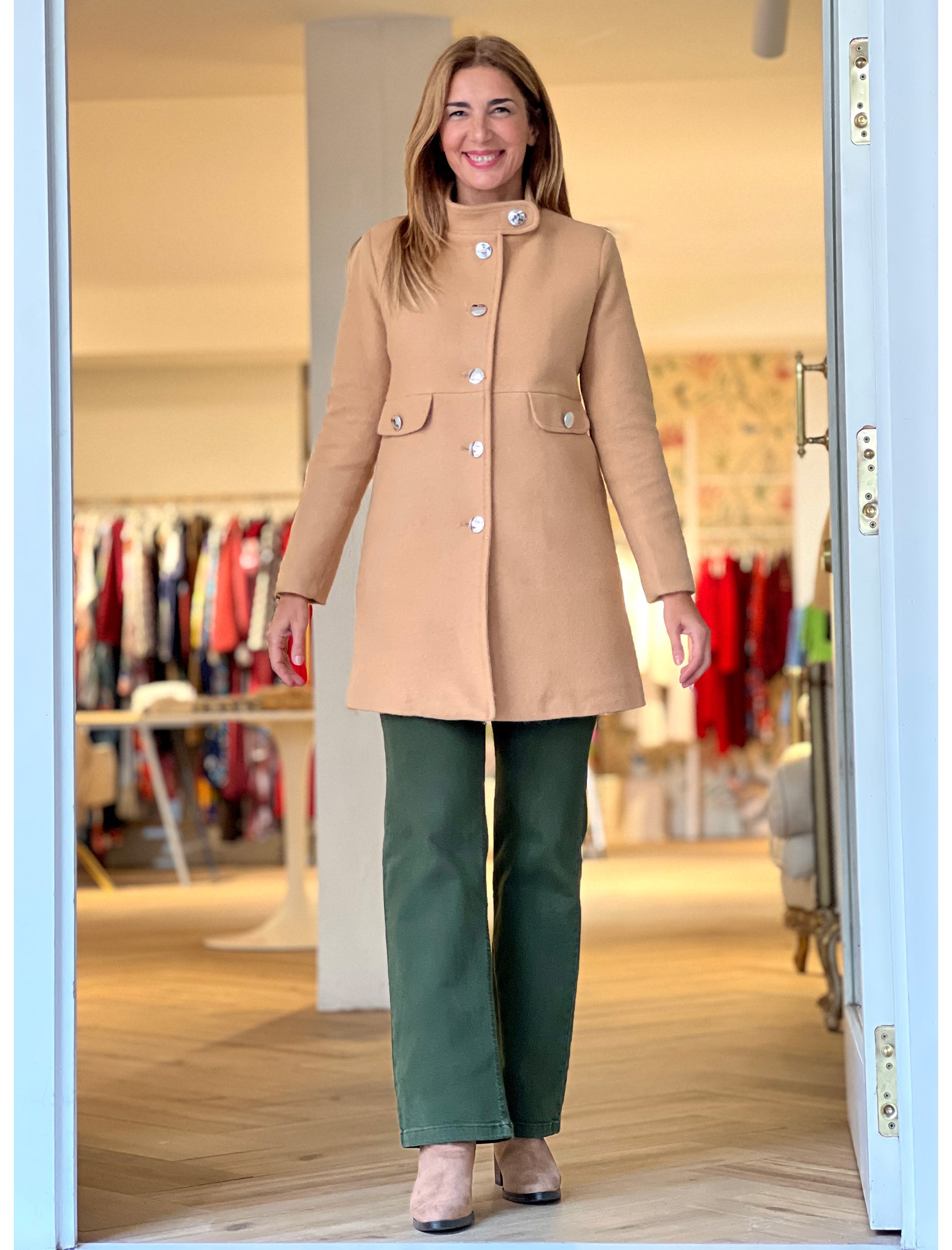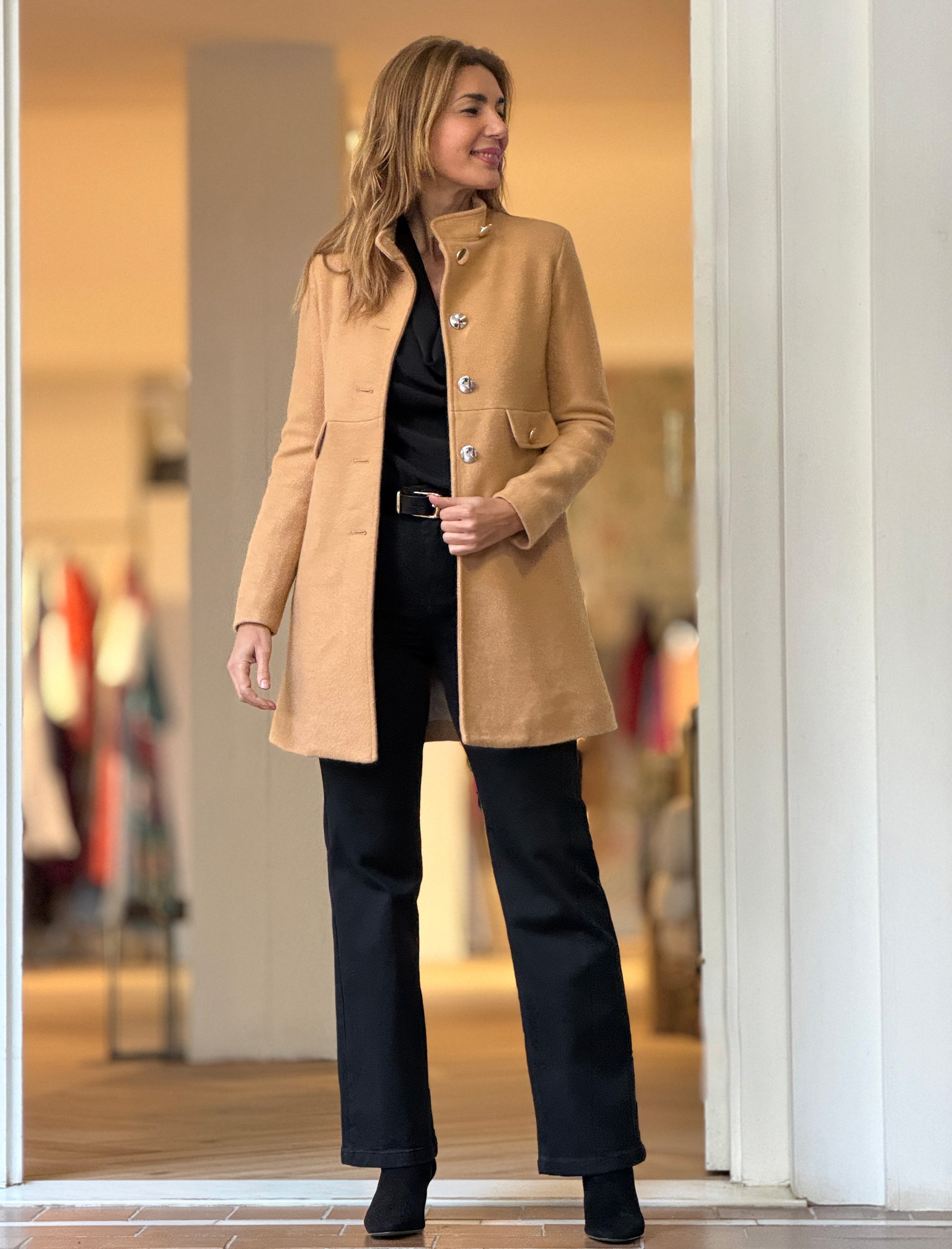 Abrigo Ideal Superfavorecedor Camel es una de esas prendas que sientan bien a todas. Su tejido suave y su preciosa botonadura aportan elegancia y estilo, mientras que el patrón entallado realza la figura. El cuello tipo caja le da un aire femenino, perfecto para combinar con faldas, vestidos o pantalones. Una prenda atemporal que favorece, estiliza y eleva cualquier look.