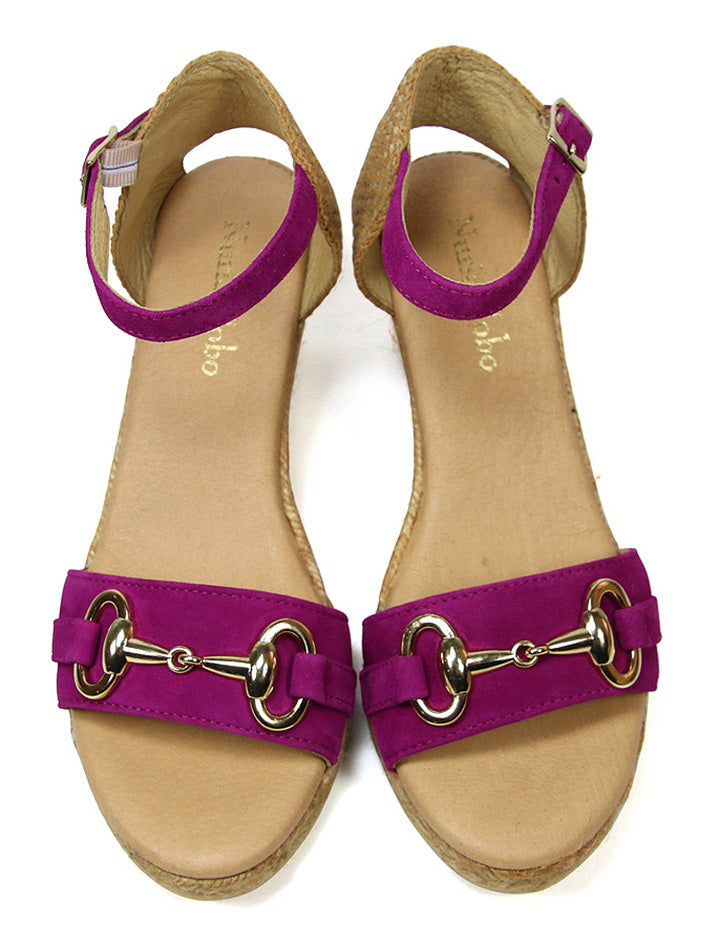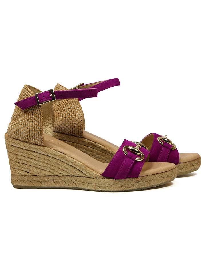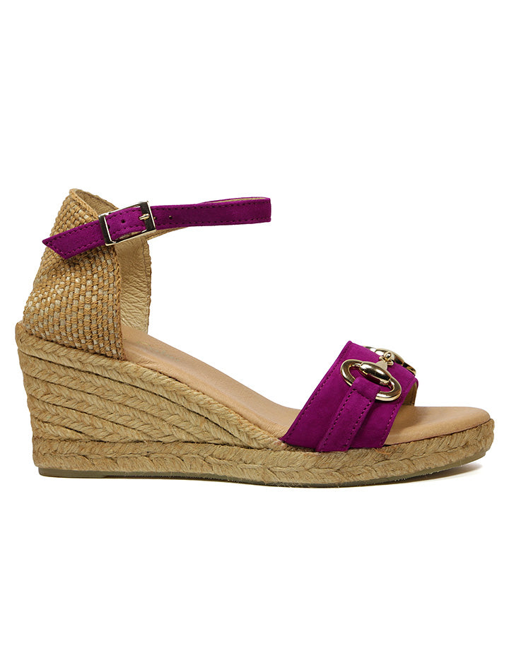 Esparto sandal with 7.5 cm wedge and 2 cm front platform. Padded plant and rubber sole.