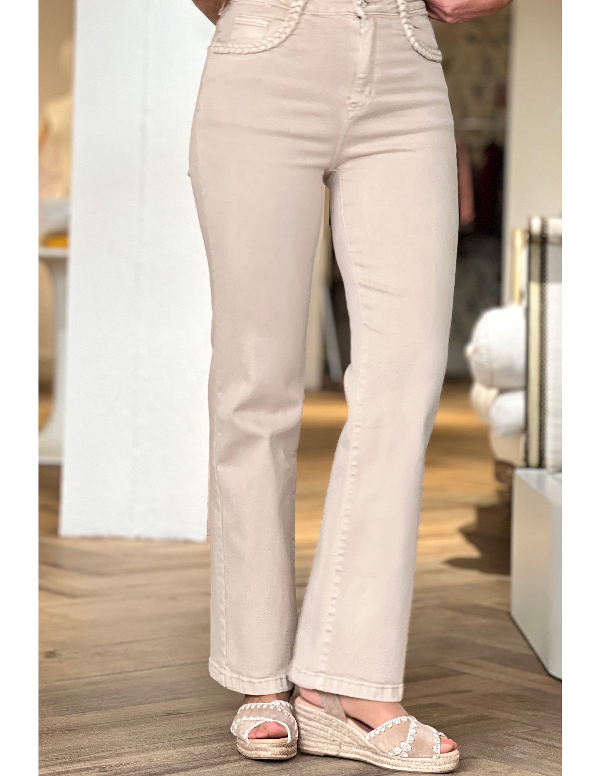 Alpargata de cuña piel puntera bordada Mikonos beige
