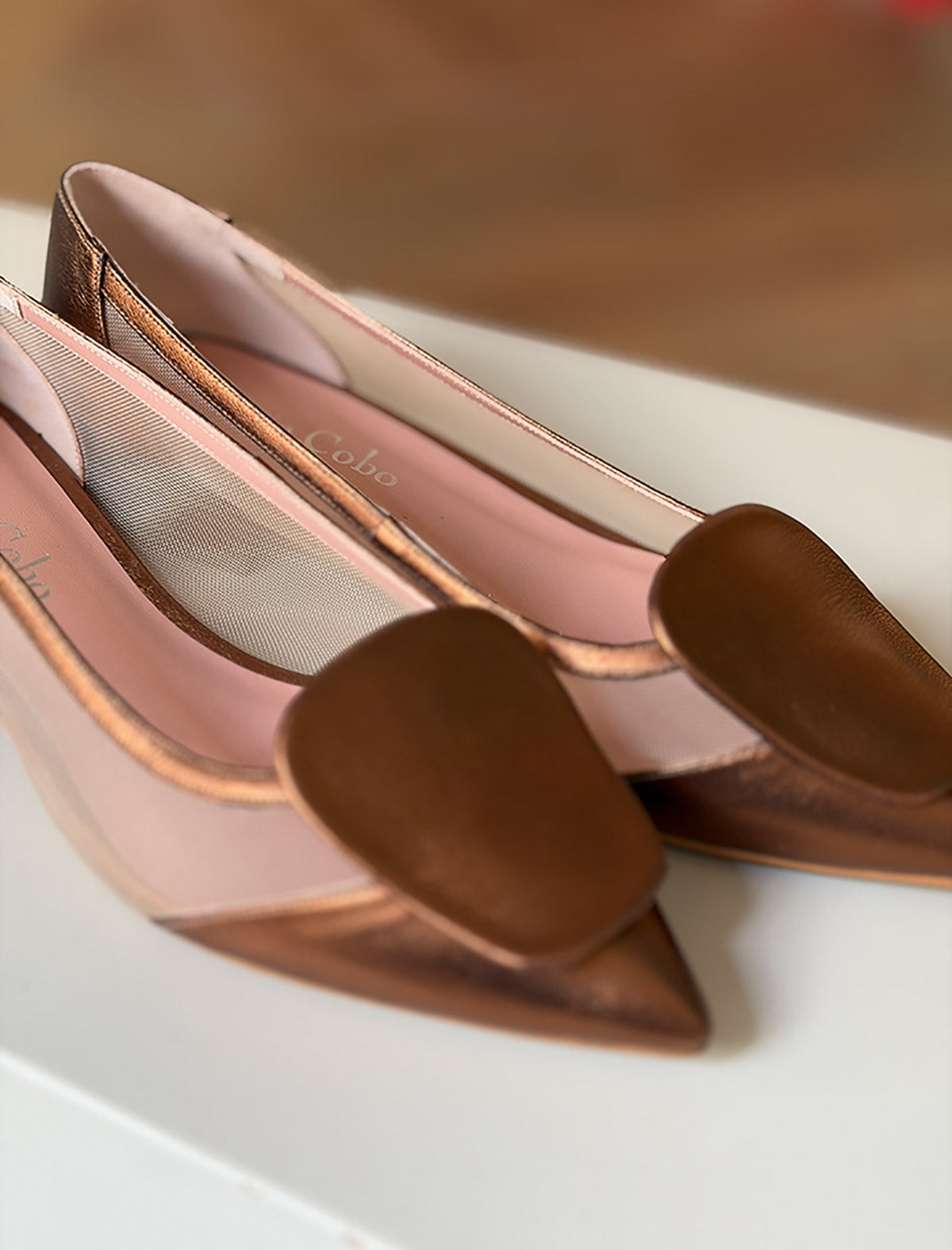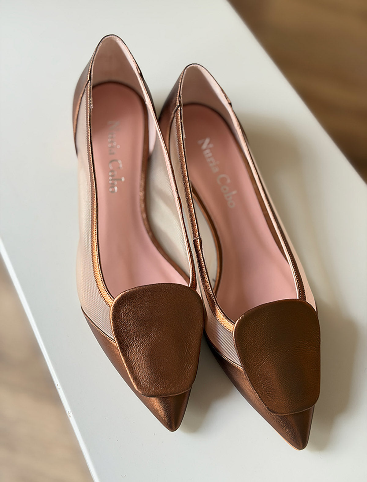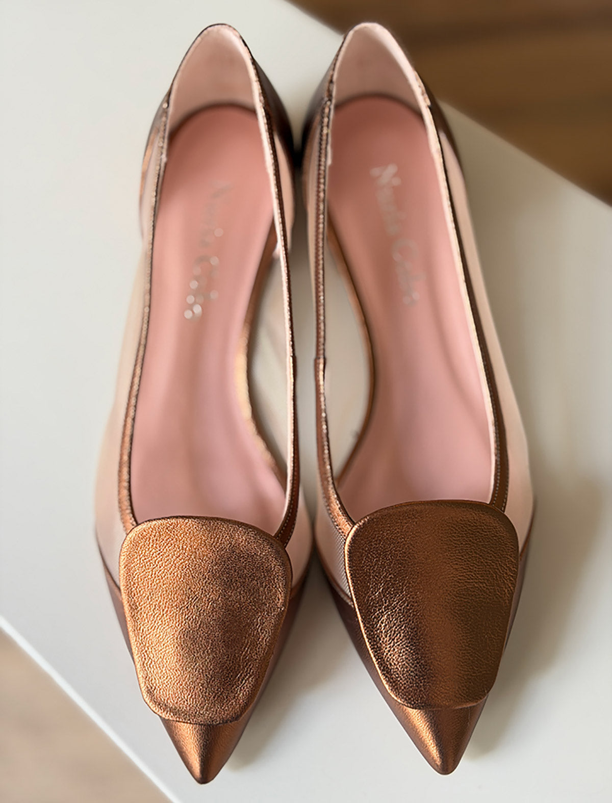 Bailarina de rejilla cobre estilazo artesanal y de estilo atemporal. Fabricadas en piel tono cobre artesanalmente en España, con lateral de malla que estiliza el pie. Son ese zapato plano chic que eleva cualquier look sin renunciar a la comodidad. Perfectas para combinar con vestidos midi, pantalones fluidos o tus jeans favoritos.