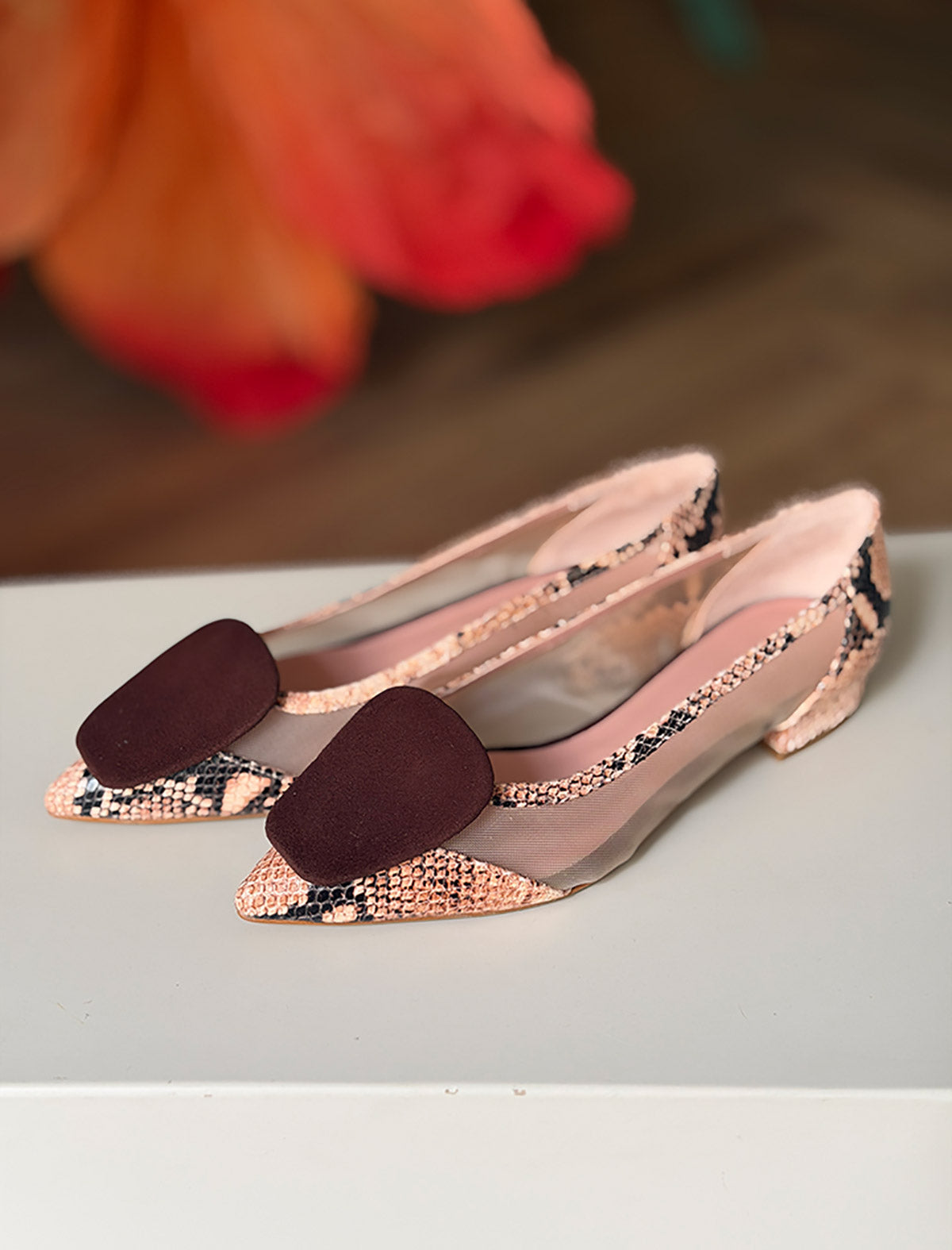 Bailarina de rejilla estilazo artesanal y de estilo atemporal. Fabricadas en piel tono print artesanalmente en España, con lateral de malla que estiliza el pie. Son ese zapato plano chic que eleva cualquier look sin renunciar a la comodidad. Perfectas para combinar con vestidos midi, pantalones fluidos o tus jeans favoritos.