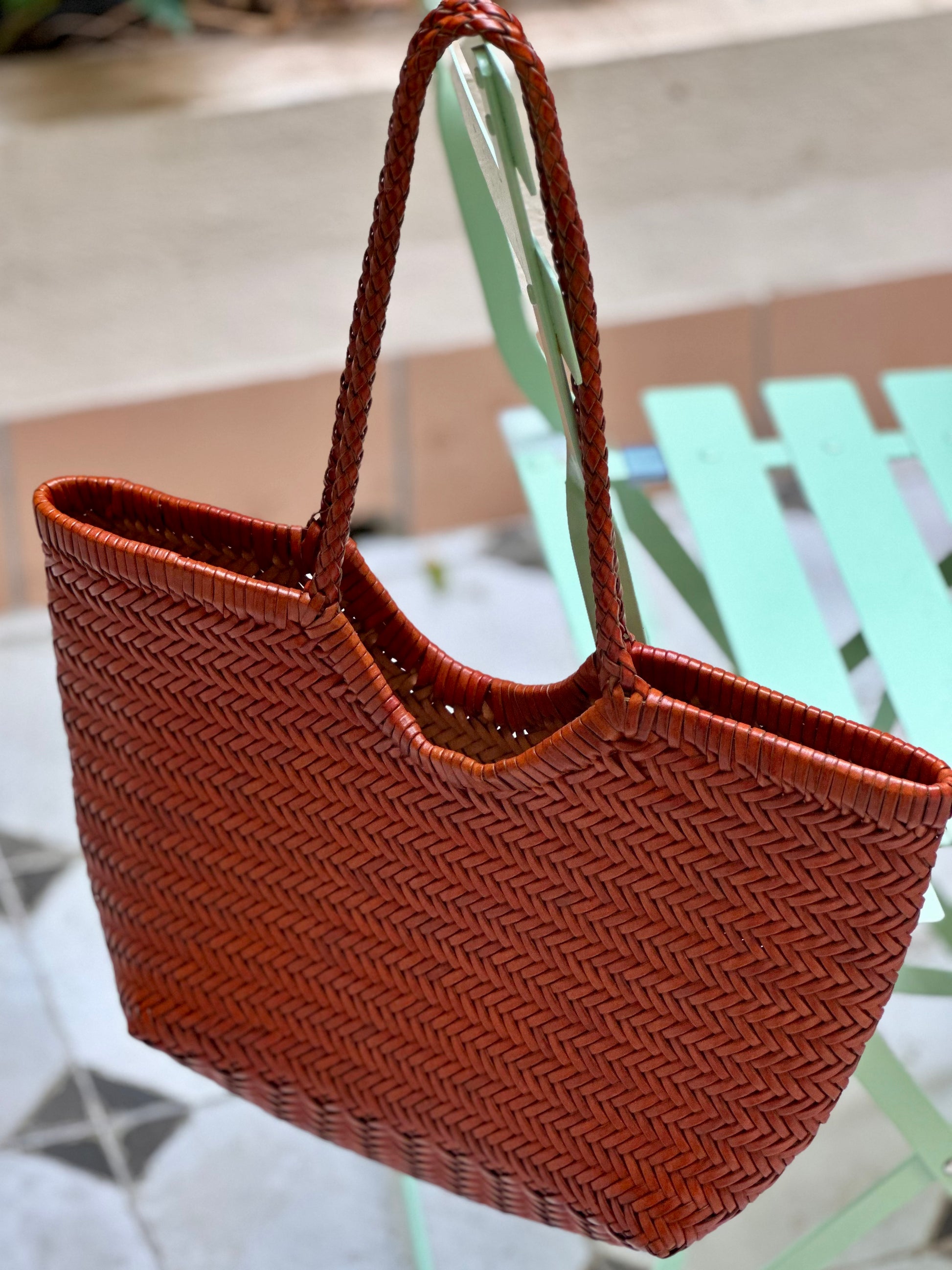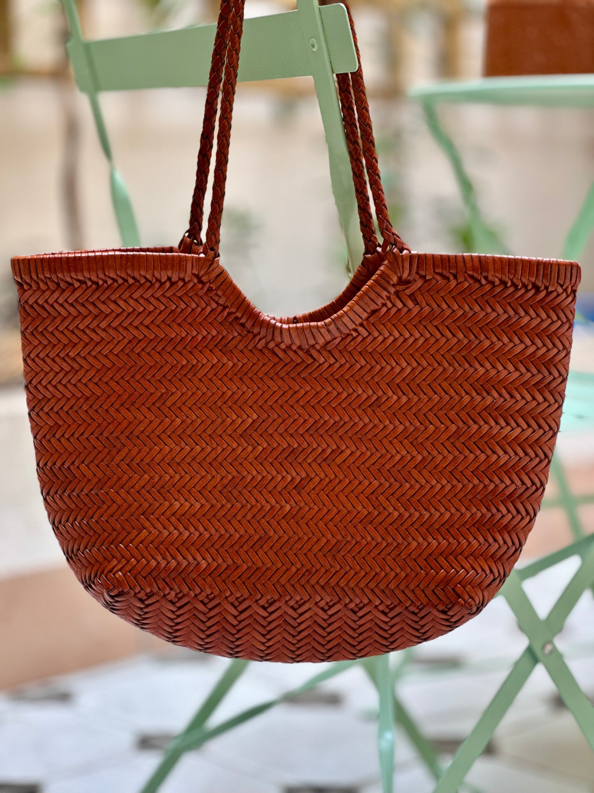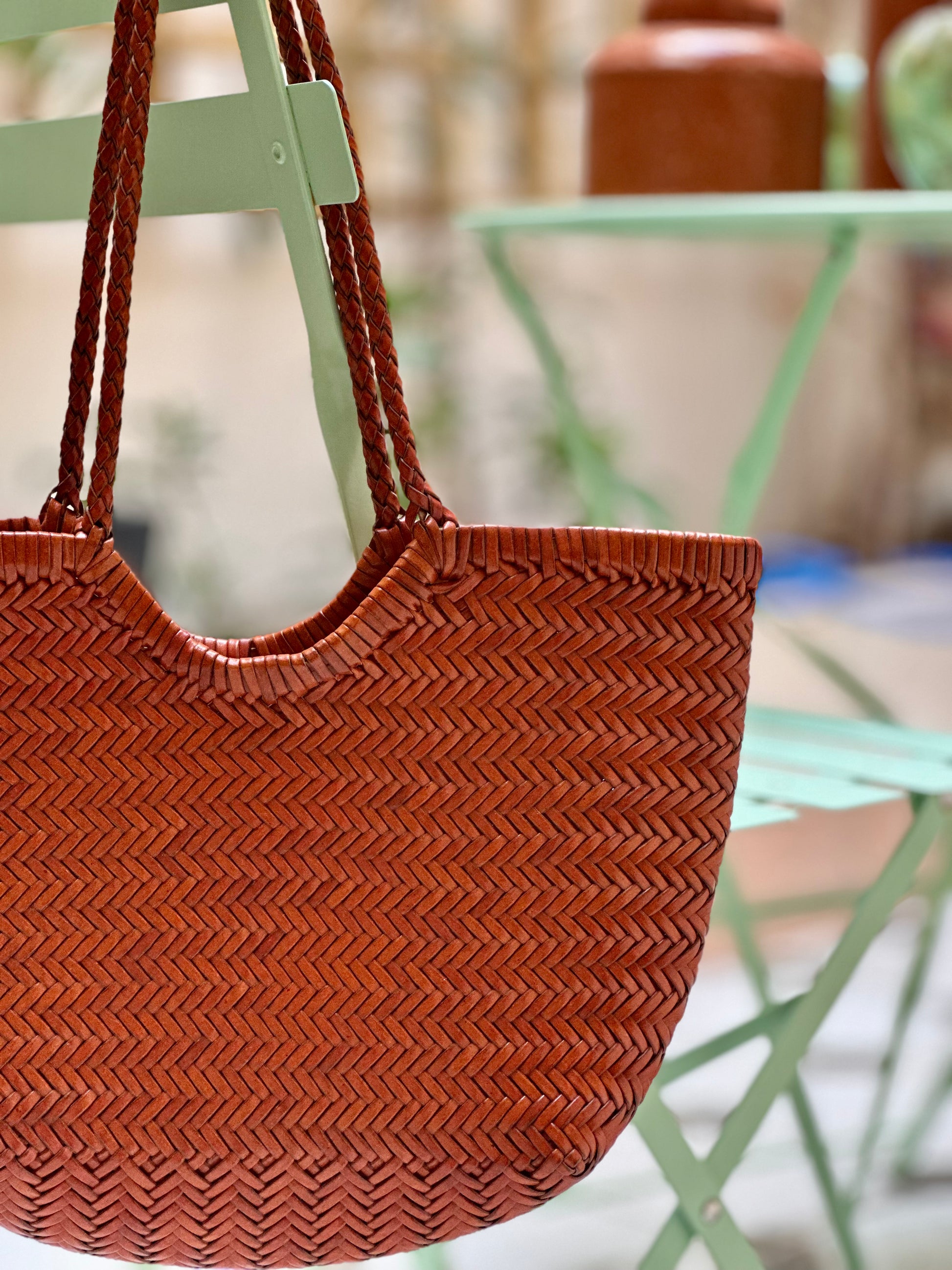 El Bolso de piel Mafalda camel es una pieza única que combina elegancia, estilo natural y practicidad. Realizado en piel trenzada con acabado artesanal, este bolso destaca por su tono camel cálido y su forma estructurada que aporta carácter sin renunciar a la ligereza. Ideal para acompañarte en el día a día o en escapadas con estilo, gracias a su capacidad y comodidad.