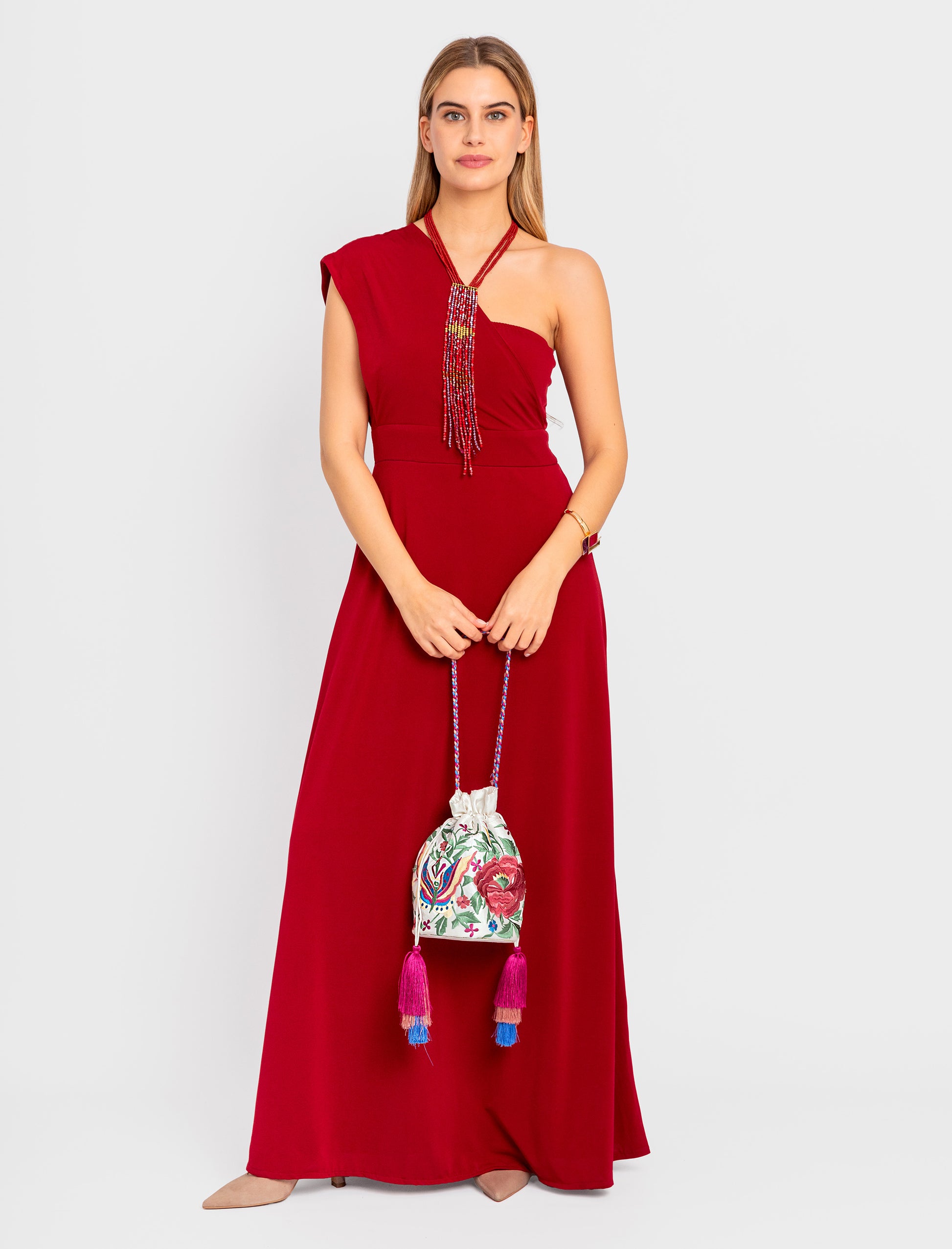 Un bolso de seda bordada que es el broche perfecto a un look muy vestido o simplemente puedes combinar con un look más casual para darle un aire boho.
