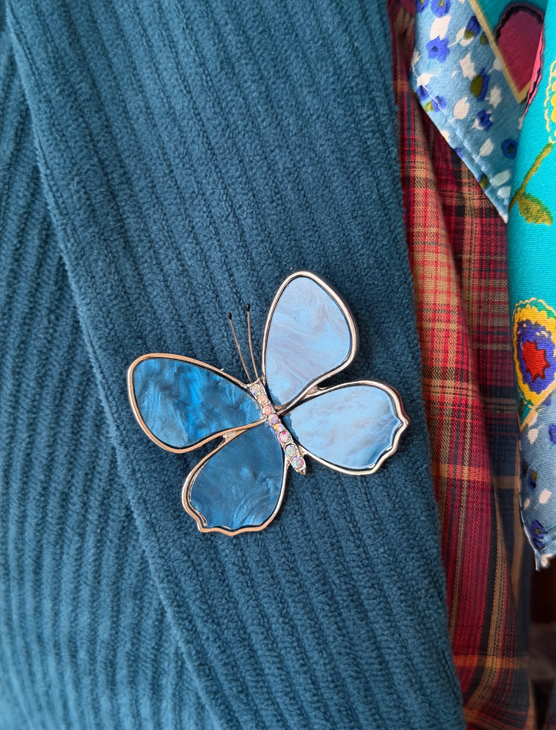 Broche mariposa esmaltada en azul presenta un diseño ligero y femenino que aporta un toque de color que ilumina chaquetas, abrigos, pañuelos o camisas, convirtiéndose en un detalle especial que marca la diferencia. Fabricado con acabado esmaltado brillante y perfil metálico. Un complemento que añade personalidad sin sobrecargar, perfecto tanto para diario como para ocasiones especiales.