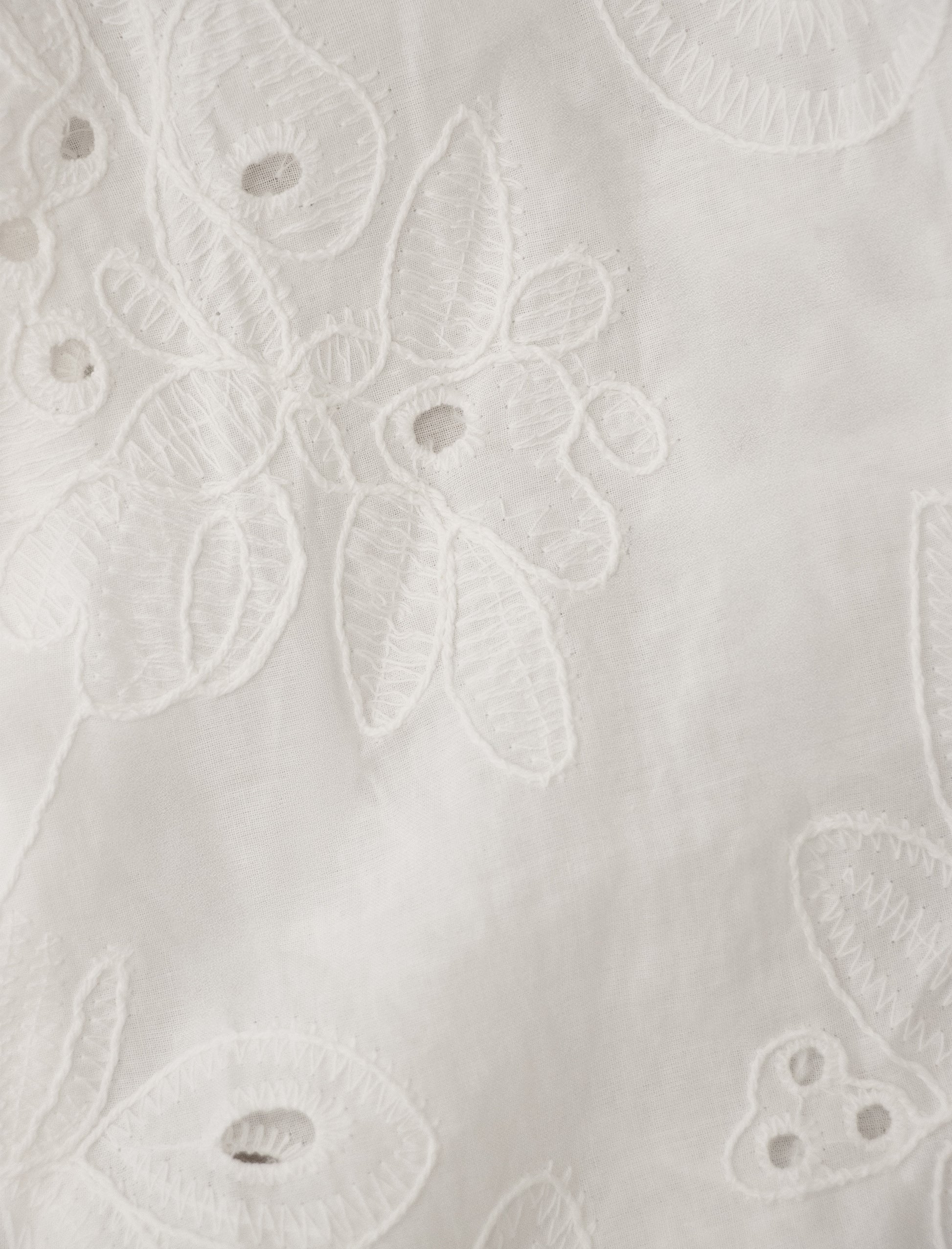 Esta camisa blanca bordada tiene un diseño encantador con un bordado precioso en mangas y cuerpo que la hace diferente y muy fácil de llevar. Es una camisa cómoda y muy favorecedora, perfecta si te gustan las prendas que sumarán a tu fondo de armario para cuando quieres ir mona sin pensar demasiado. Queda ideal con vaqueros, pantalones de vestir o incluso con una falda.
