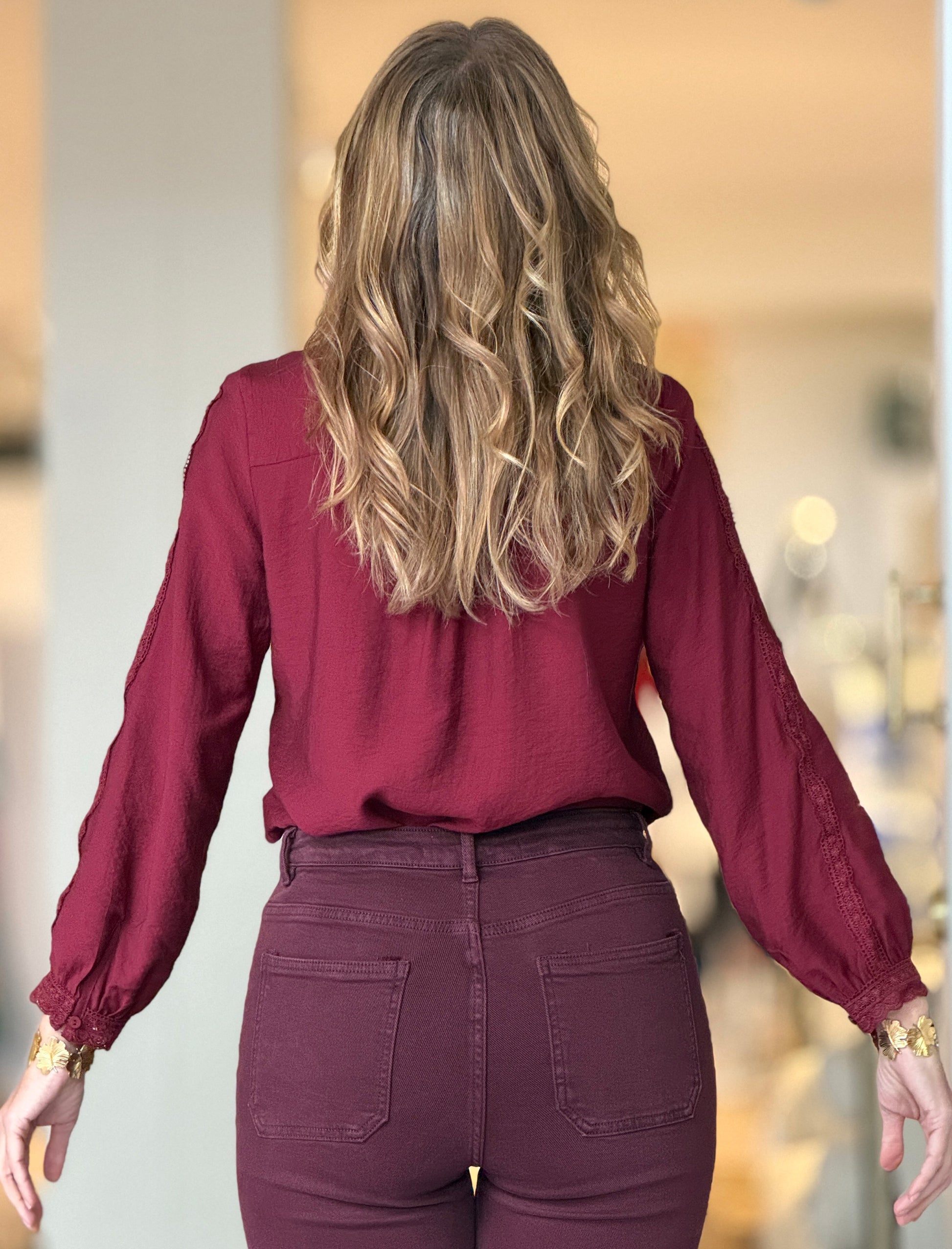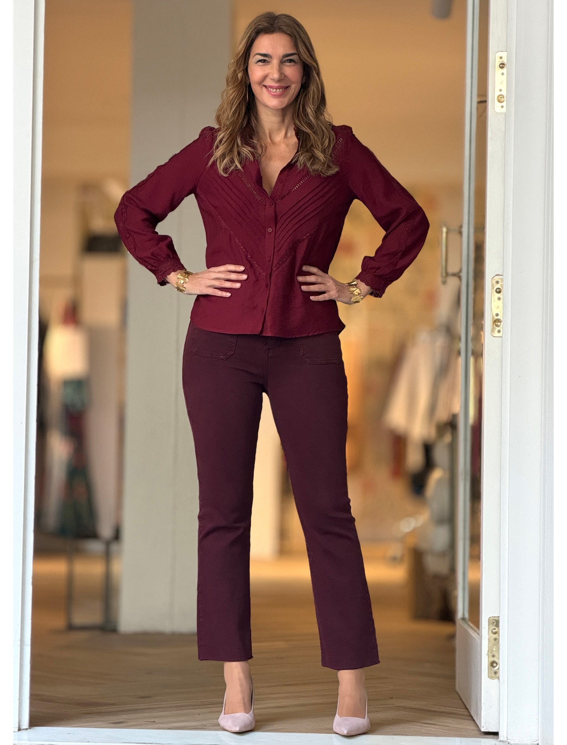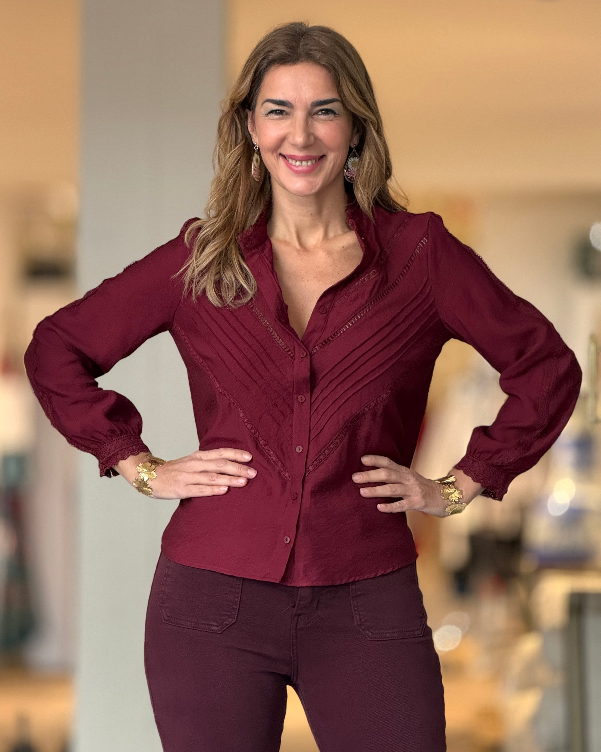 Camisa bordada burdeos