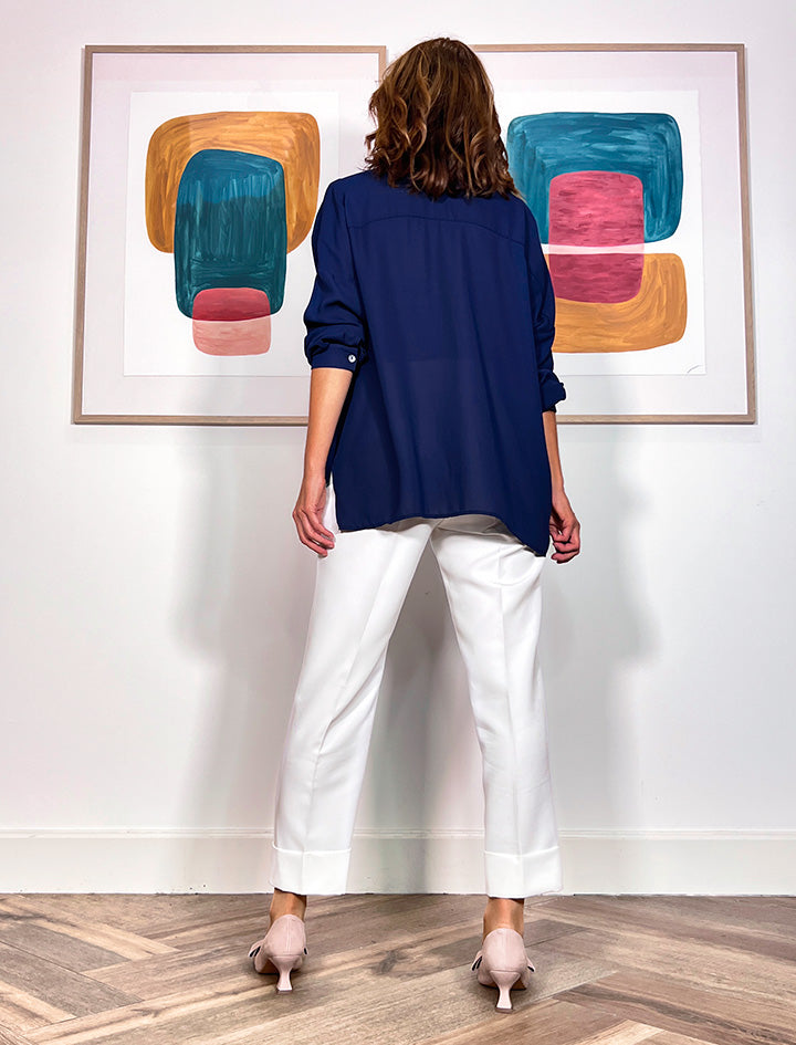 Esta camisa está confeccionada artesanalmente y es una de nuestras camisas más vendidas, el motivo es su versatilidad, queda de maravilla, no se arruga , favorece y es perfecta para un look vestido o casual