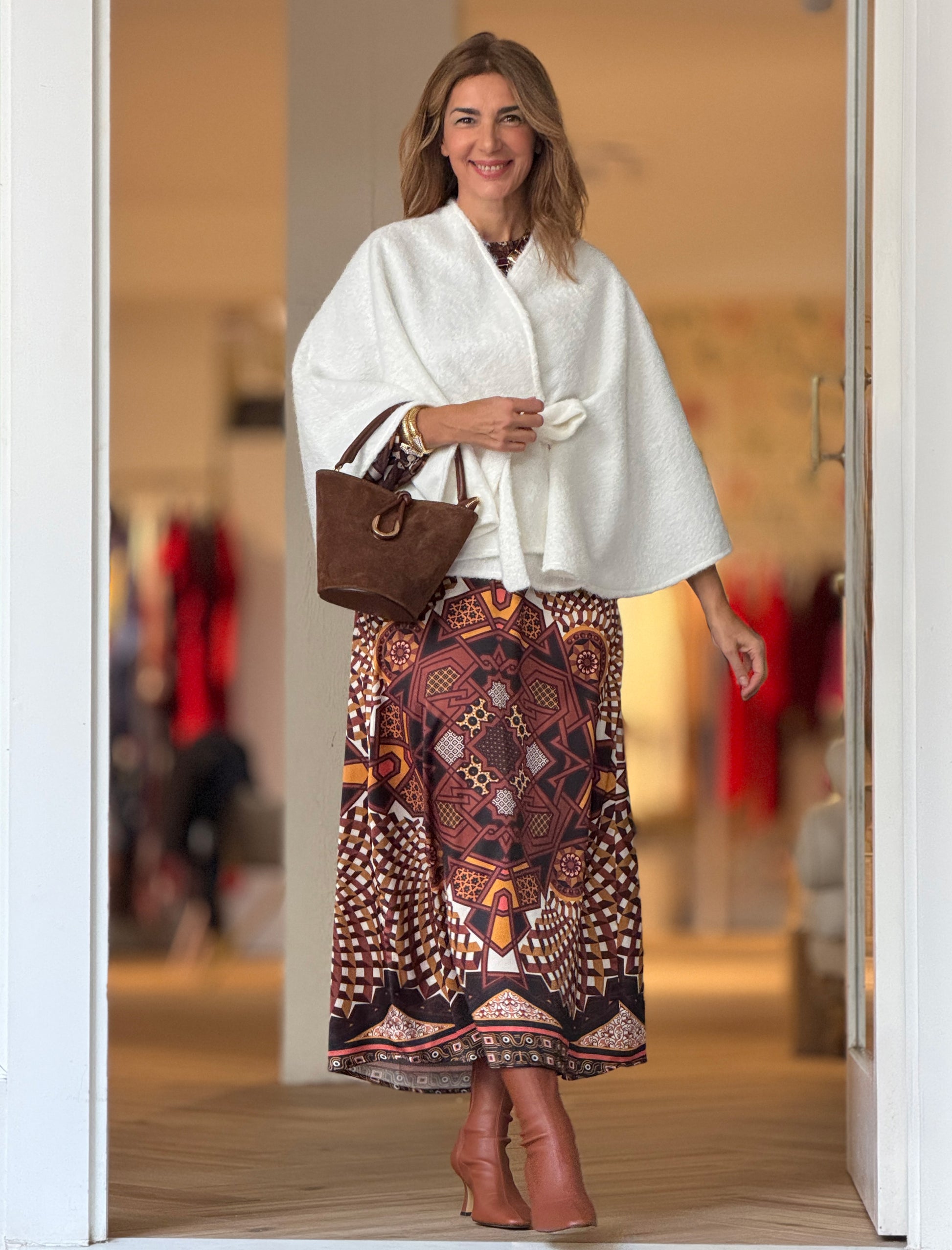 Capa con cinturón suave blanca