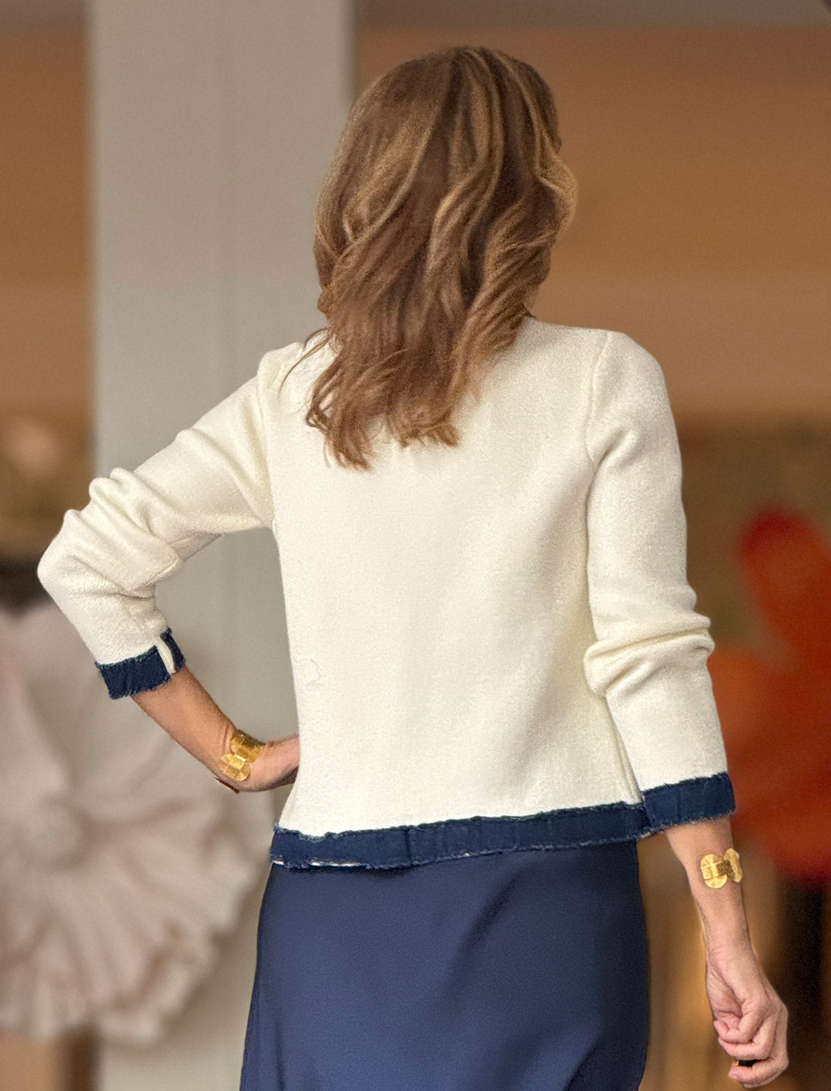 Chaqueta punto denim es la pieza perfecta para dar vida a tus looks porque tiene de "muy bien vestida". Su diseño combina un color suave con detalles en contraste que aportan un aire moderno y sofisticado. Perfecta para combinar con vaqueros, faldas o pantalones elegantes. Una chaqueta distinta, con mucha personalidad, pensada para mujeres que buscan destacar con estilo.