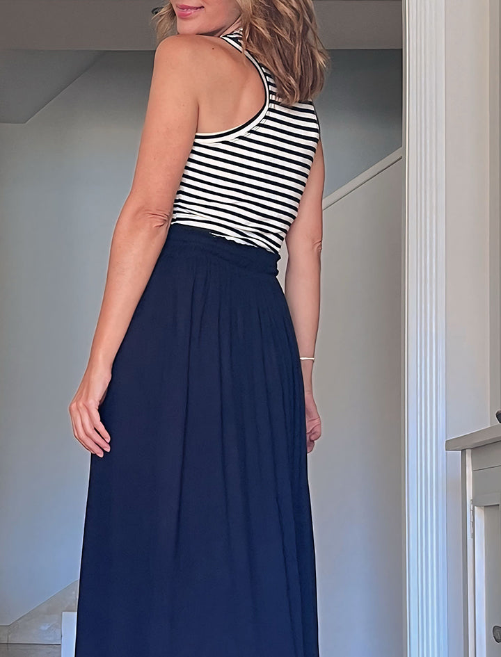 Gracias a la cinturilla elástica, se adapta con comodidad a distintas tallas. Combínala con blusas lisas o tops estampados para crear conjuntos equilibrados y con estilo propio.
