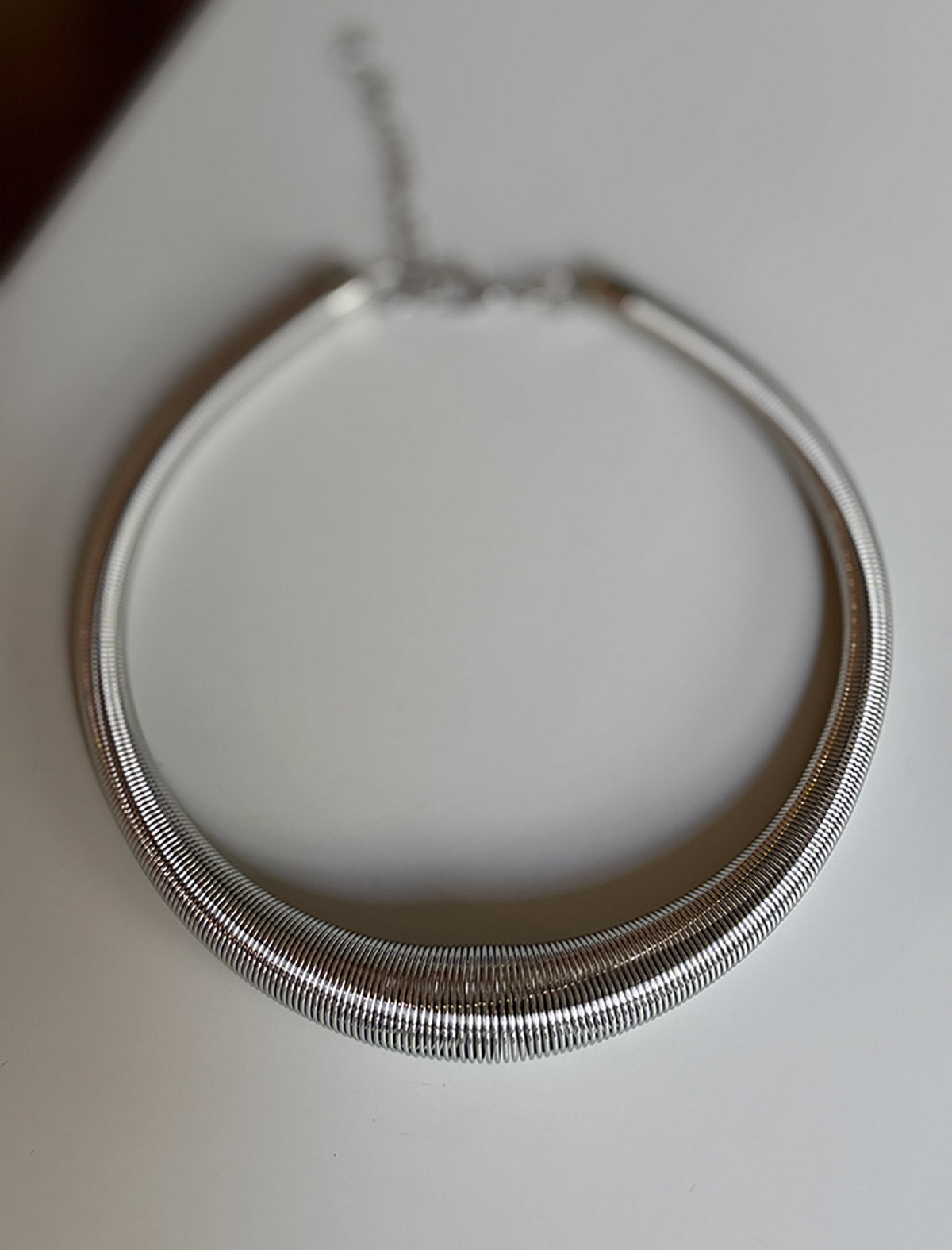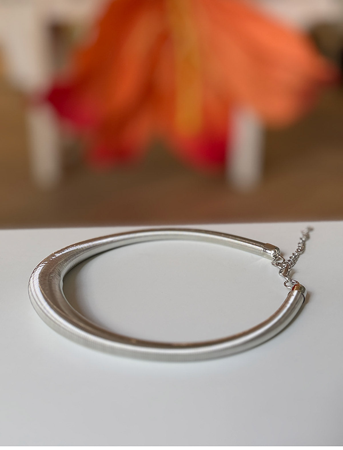 La Gargantilla Metálica Plateada es ese accesorio versátil que transforma tu look. Su diseño fino y en color plata aporta luz al rostro, suma elegancia y combina con looks formales o más casuales. Es ideal para llevar con camisas o jerséis. Una pieza esencial para quienes buscan un toque sofisticado y atemporal en su día a día.