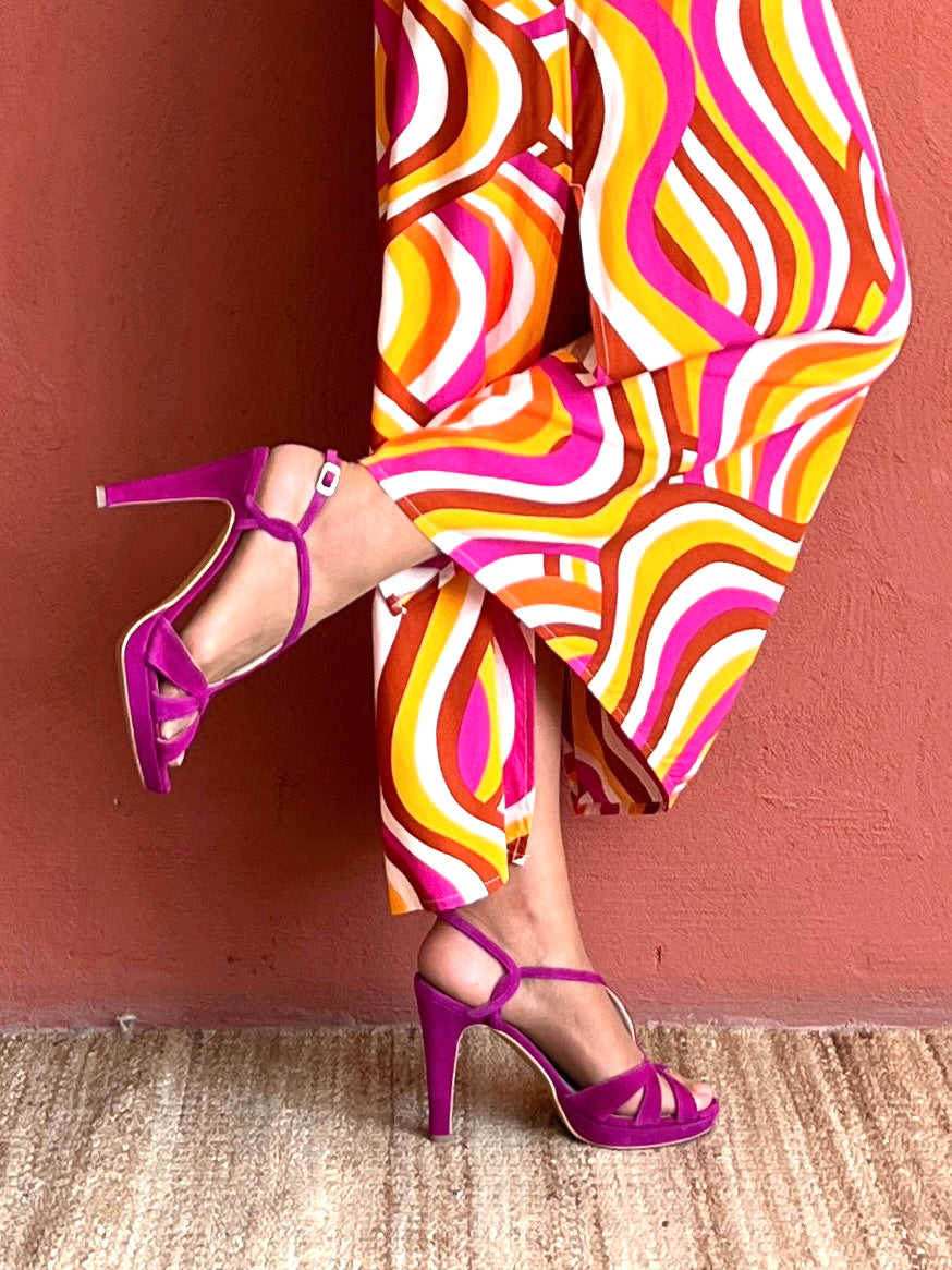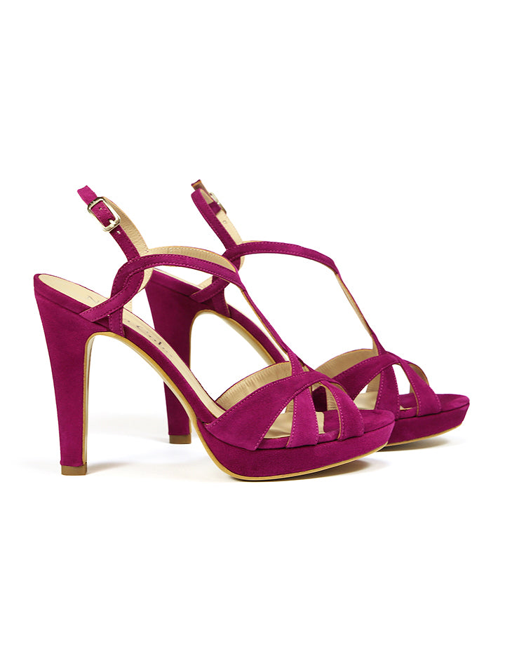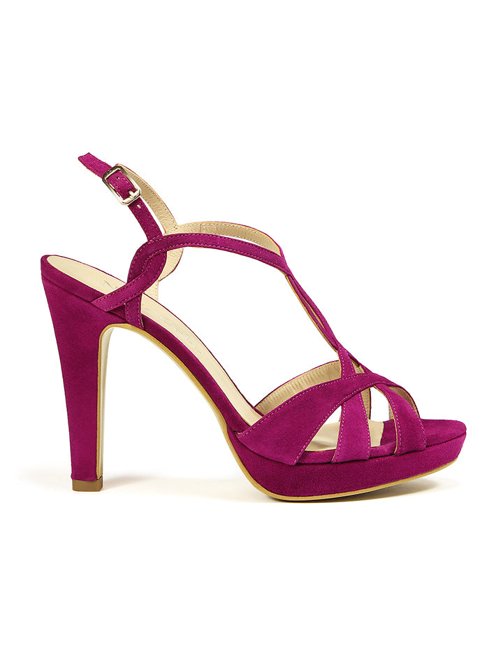 It is logical, this bougainvillea suede sandal, with a very comfortable 11 cm heel, and a 2 cm platform, It is that sandal that you can wear for hours and hours, and be delighted by its comfort and support., it is beautiful, it is ideal to combine with green, blue, pink, white, black... and it animates any outfit you wear.