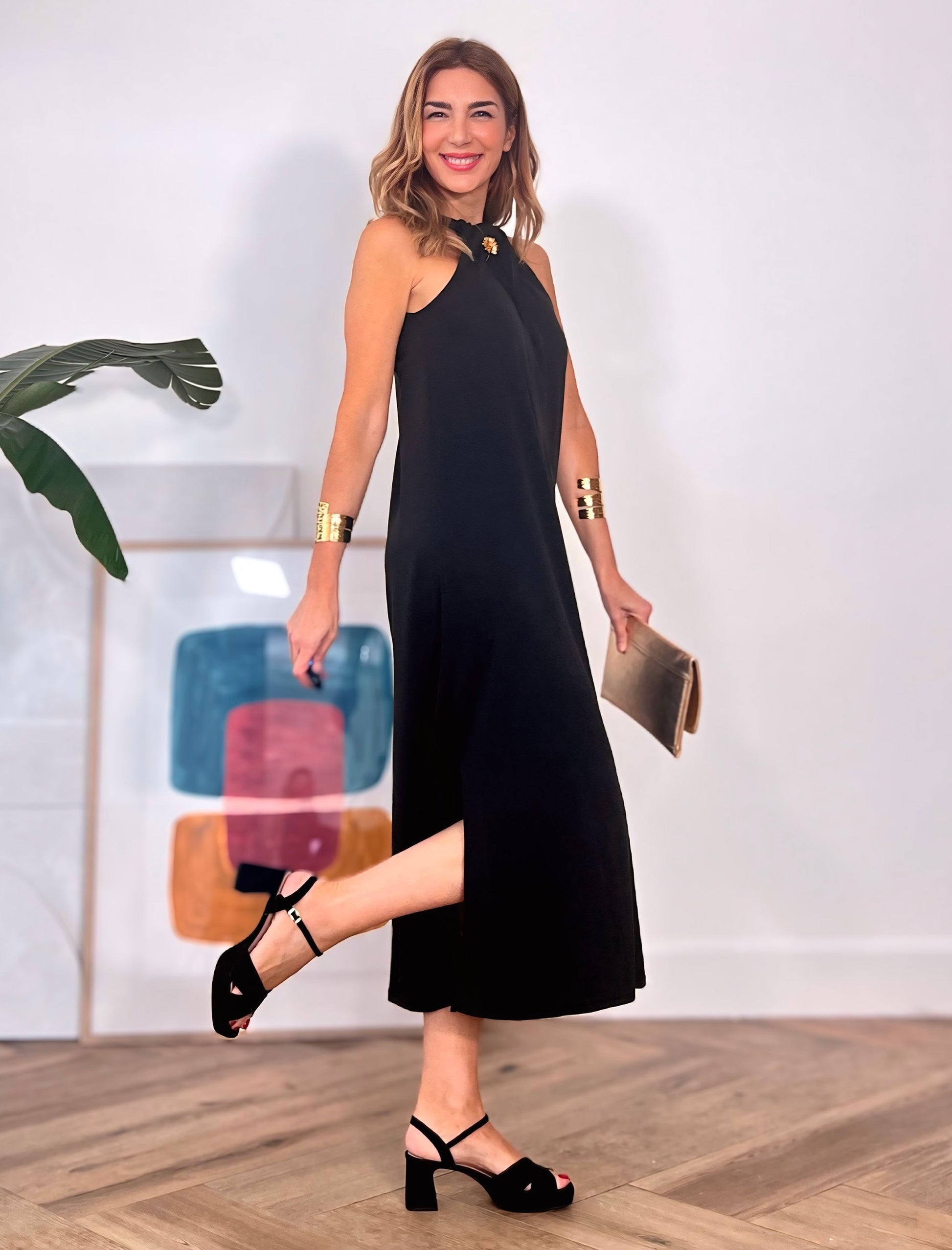 El color negro clásico la convierte en un comodín perfecto para looks casuales o más vestidos.