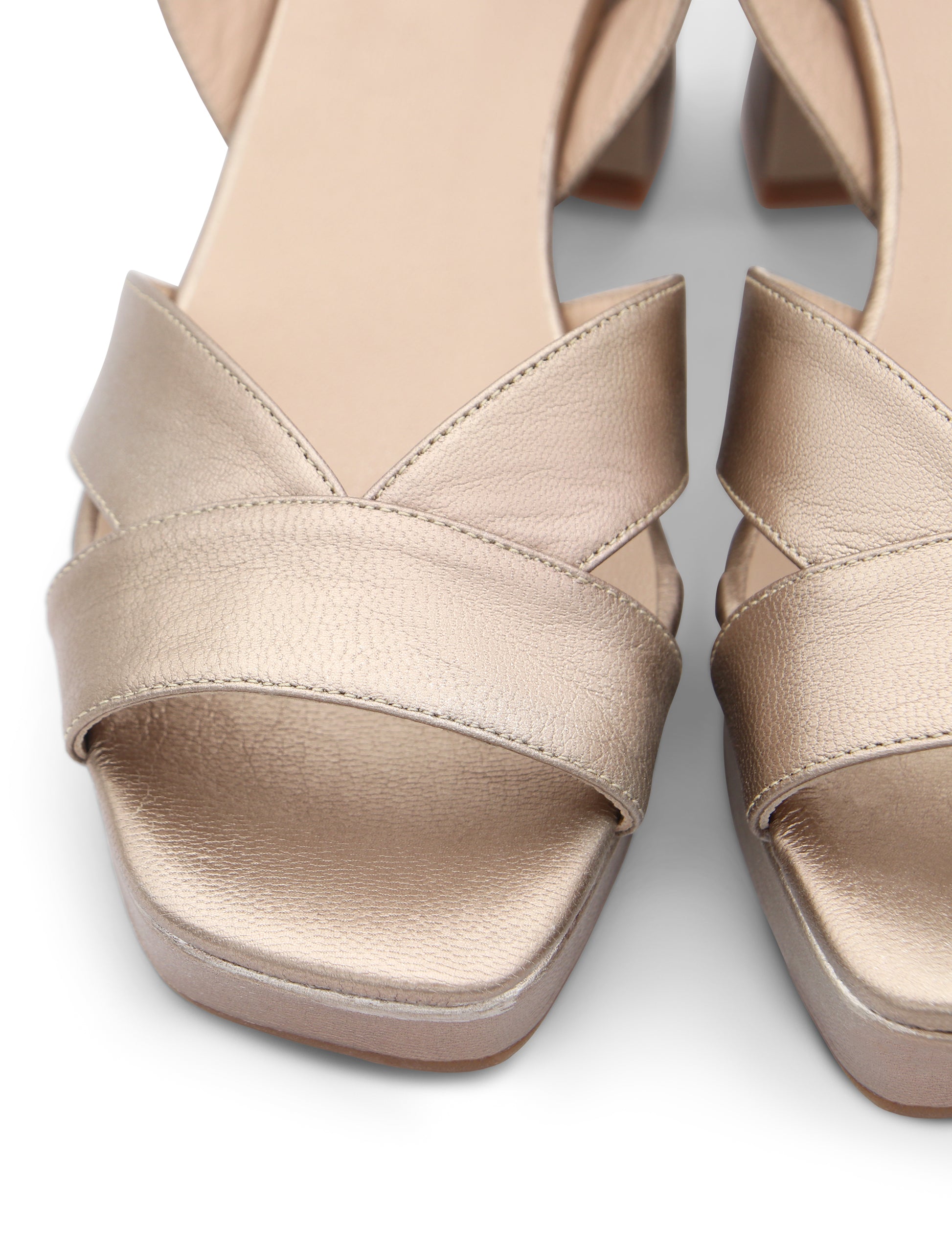 Sandalia Muy Suave en dorado, fabricada en piel, con forro y planta también en piel para ofrecer el máximo confort en cada paso. Su tacón medio, de base ancha, aporta estabilidad sin renunciar a la elegancia, mientras que la tira delantera cruzada sujeta el pie con estilo. Su diseño limpio y versátil permite combinarla con todo, desde vestidos fluidos hasta pantalones más formales.