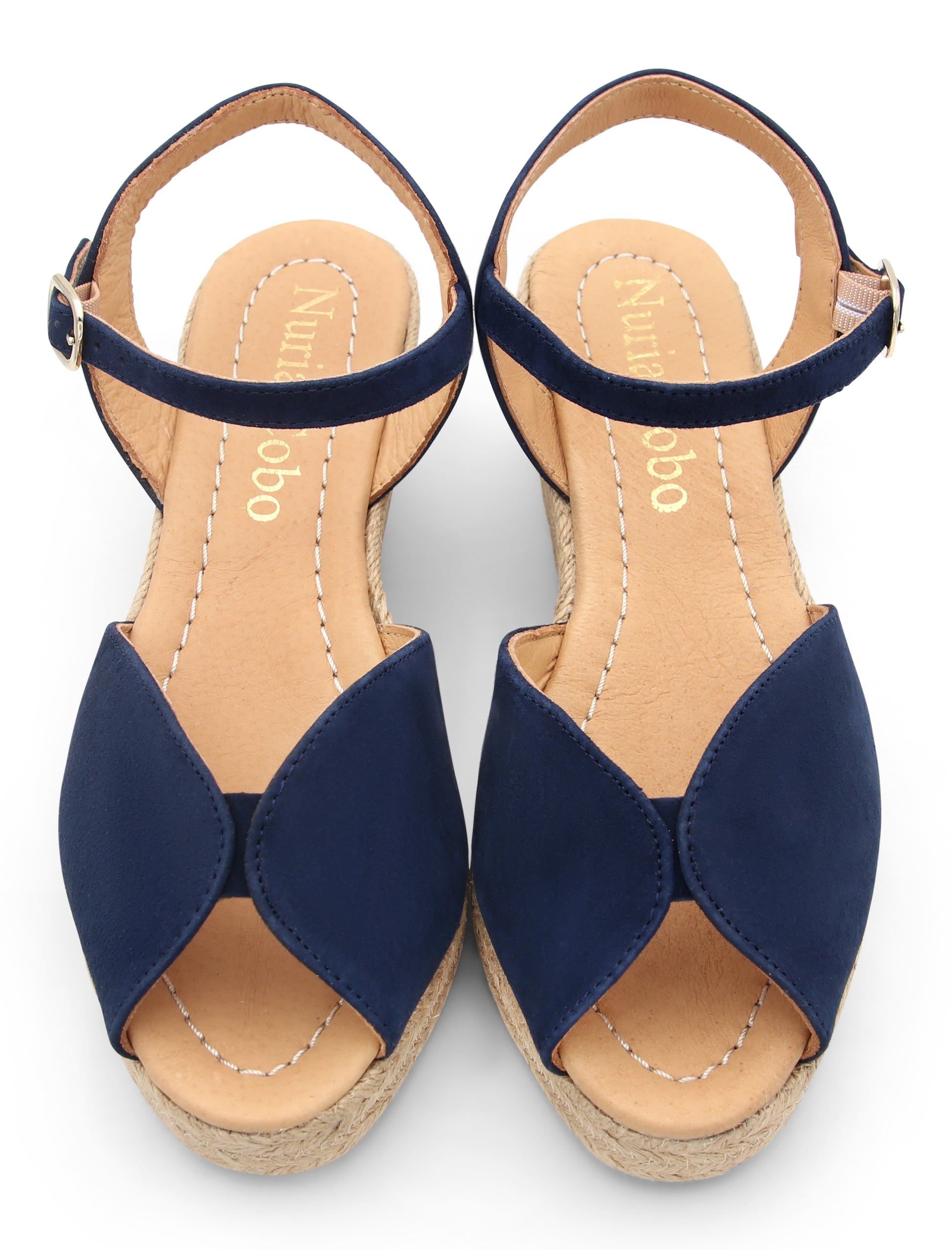Alpargata de cuña baja Ideal en color marino, forrada en piel y con planta interior también de piel. Su confección artesanal en España garantiza calidad y mimo en cada detalle. Ideal para looks veraniegos con pantalones claros, vestidos de lino o faldas vaporosas.