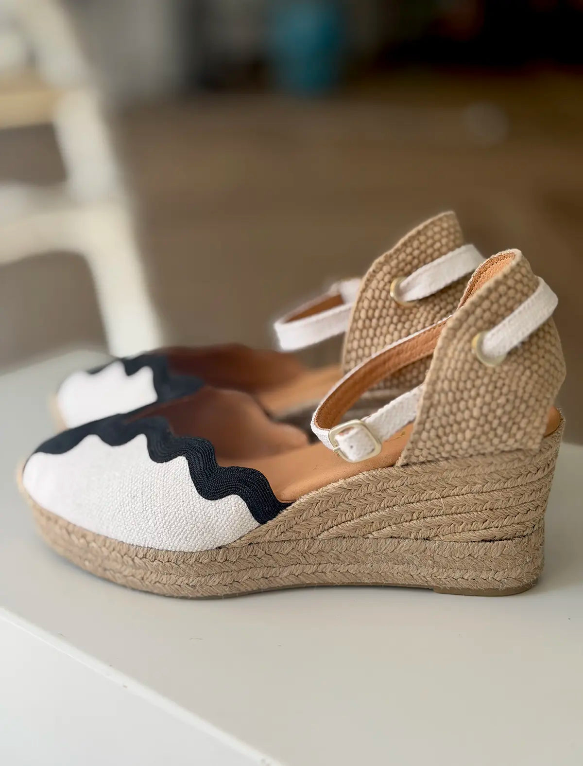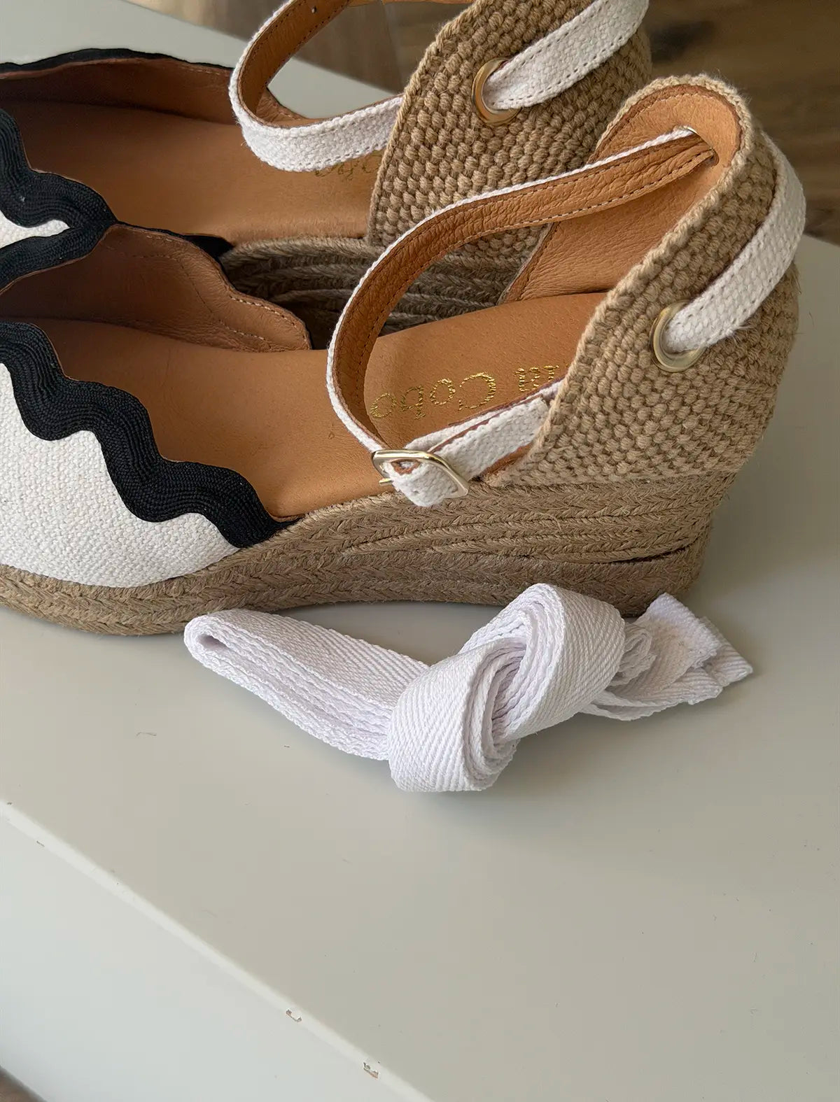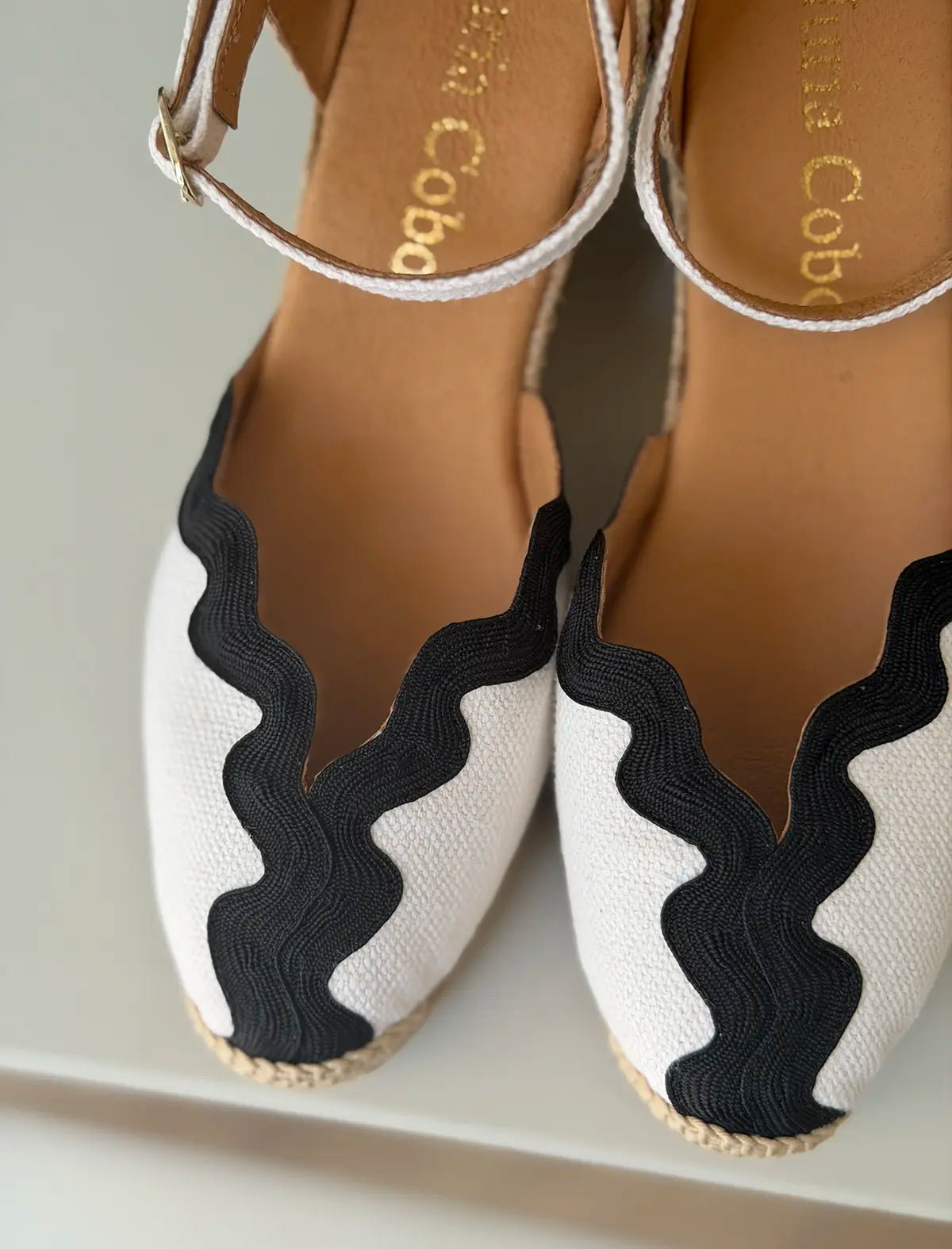 Esta alpargata de cuña en blanco es ese básico especial que nunca falla. Tiene la altura perfecta para estilizar sin renunciar a la comodidad, y el detalle de blonda le aporta ese toque femenino y delicado que la hace diferente.
