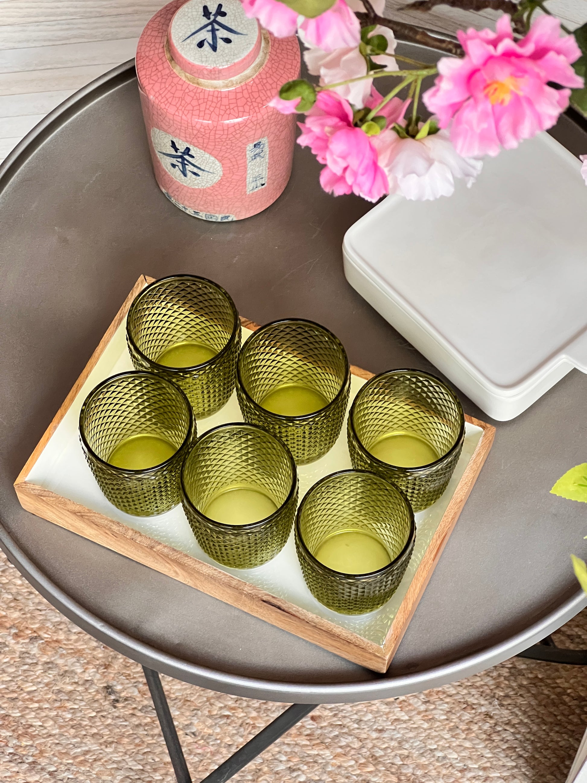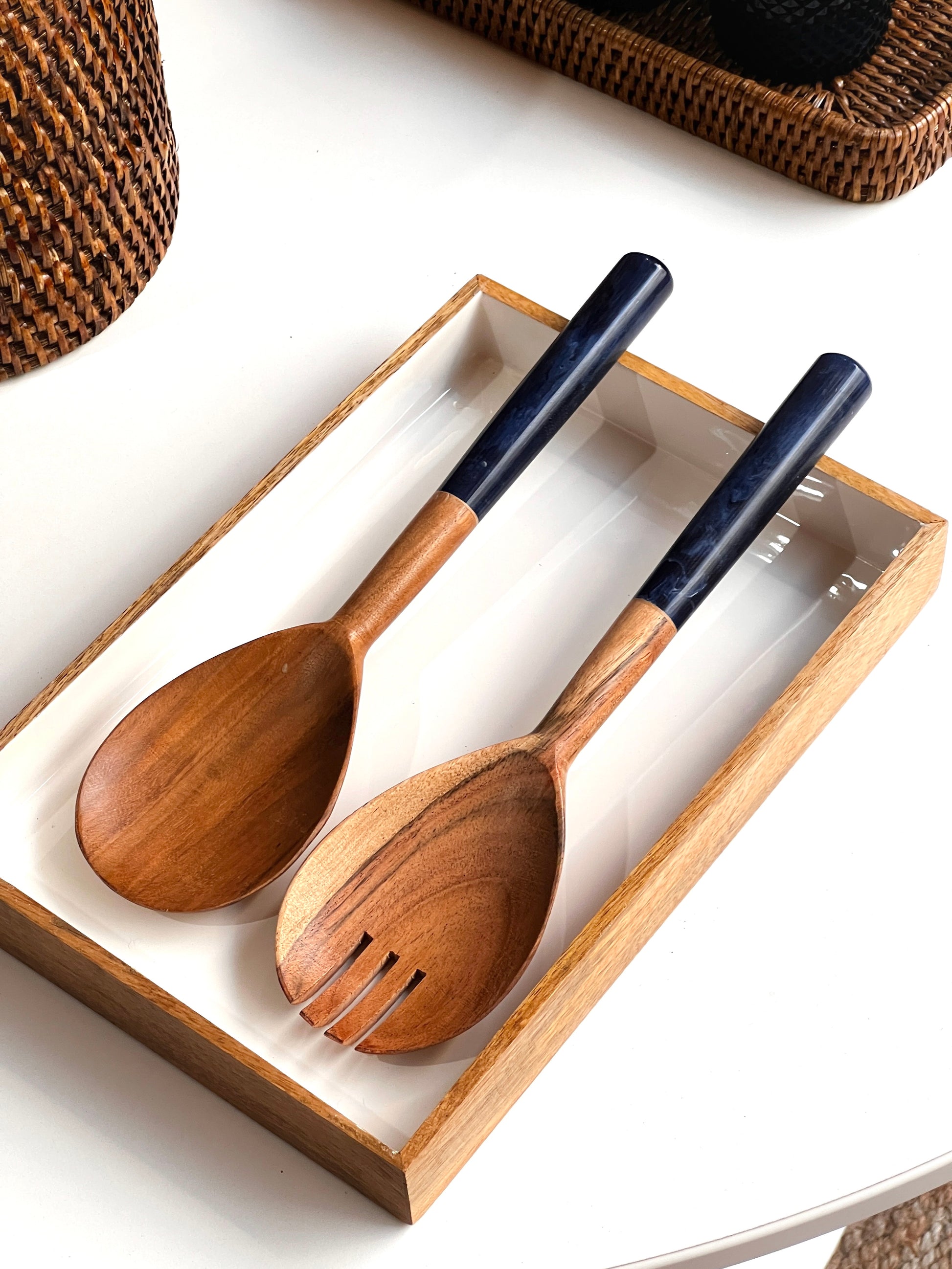 Bandeja de madera con sobre esmaltado en blanco