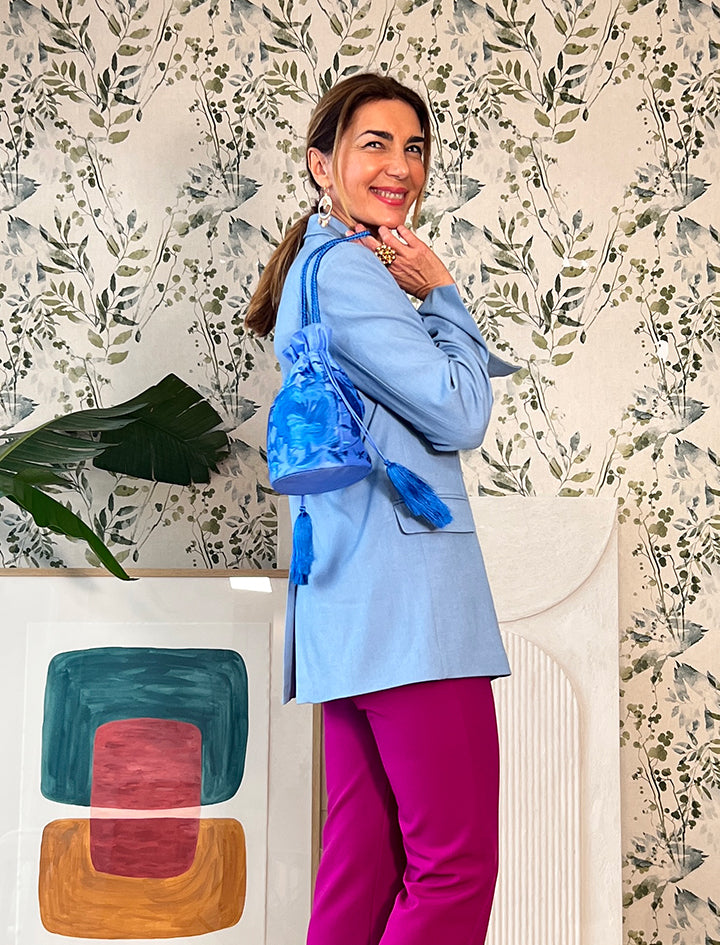 Bolso pochette seda bordada azul