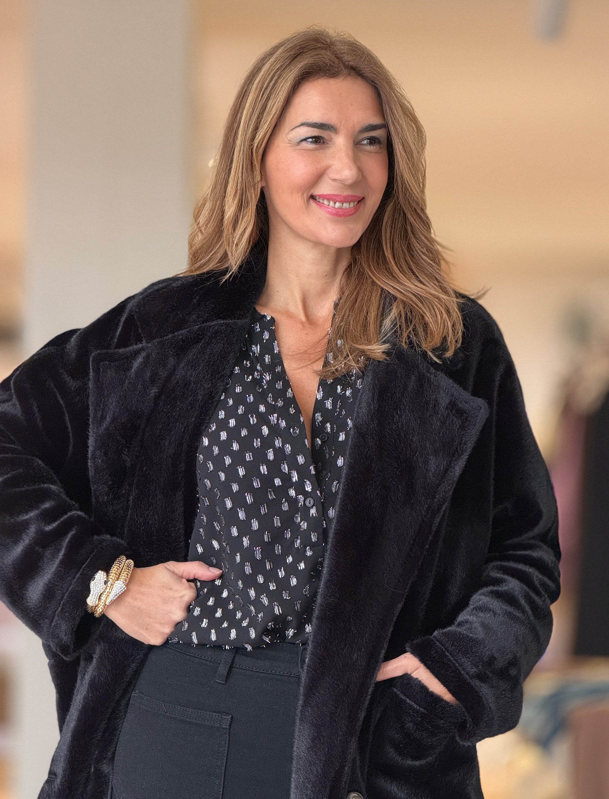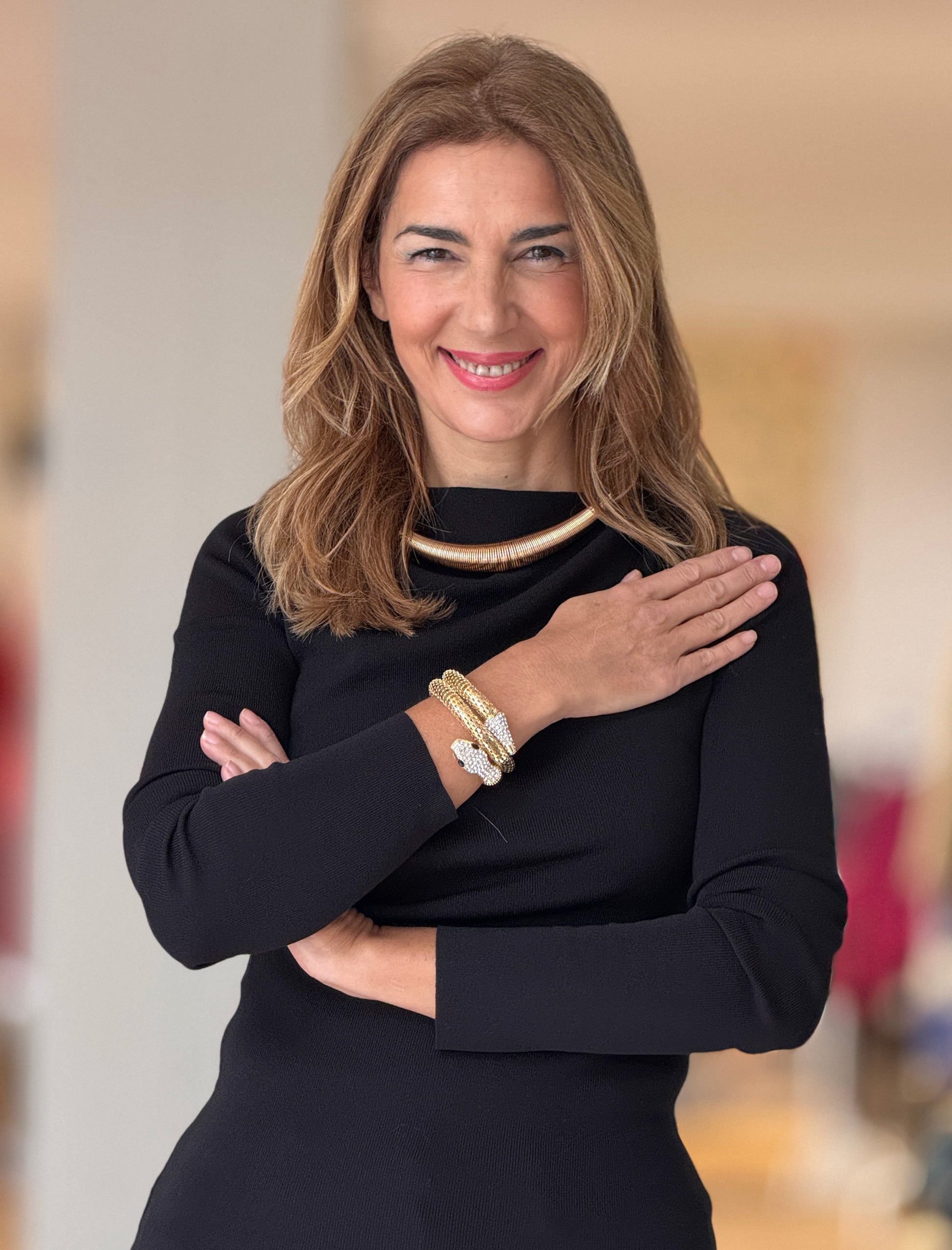 El Brazalete Serpiente Dorada es ese accesorio que eleva al instante cualquier estilismo. Los detalles en strass realzan su acabado dorado, aportando luz y un brillo elegante que funciona tanto en looks de día como en propuestas más arregladas o de noche.