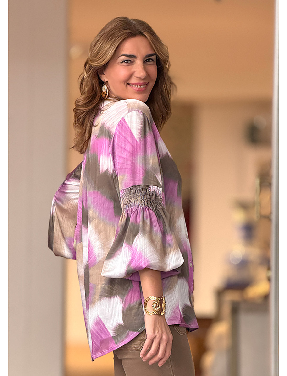 Camisa estampada Wonderfull para mujer es de esas prendas que te solucionan el armario. Su estampado en tonos rosa, beige y tierra es favorecedor y muy combinable. Aporta luz al rostro y ese toque especial que eleva cualquier look sin resultar recargado. Combina preciosa con jeans, pantalón blanco, beige o incluso con tonos más oscuros para dar contraste. Perfecta para oficina, comidas, reuniones o para elevar un look diario.