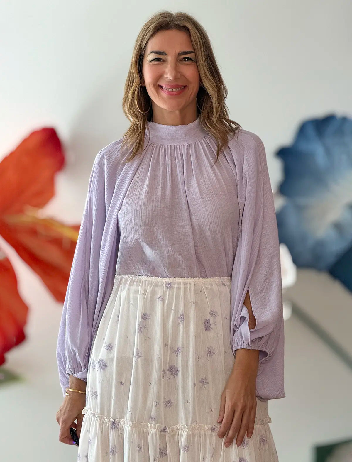 Esta Camisa lila con lazada es pura suavidad con personalidad. El tejido ligero crea un movimiento precioso y las mangas amplias aportan ese efecto elegante y fluido que estiliza. La lazada al cuello le da un aire femenino y delicado, pero nada recargado. Con falda fluida es romántica, con pantalón palazzo se vuelve elegante.