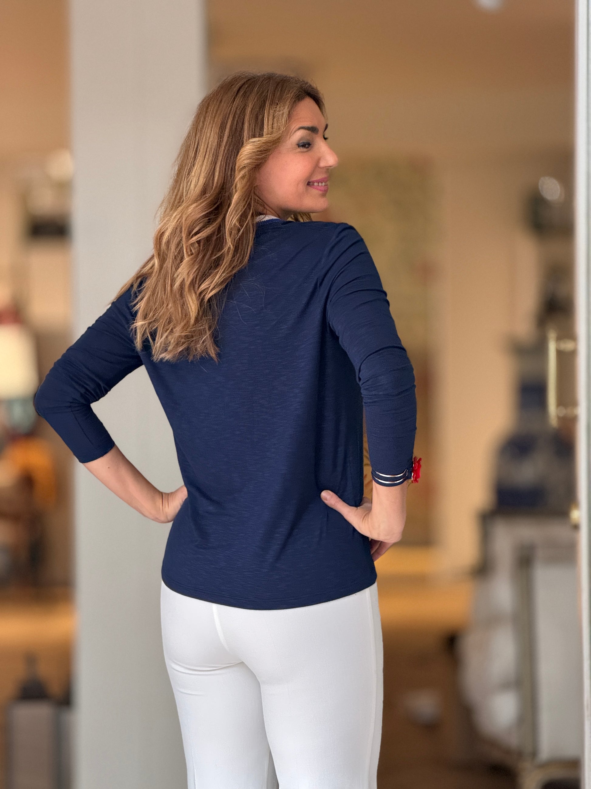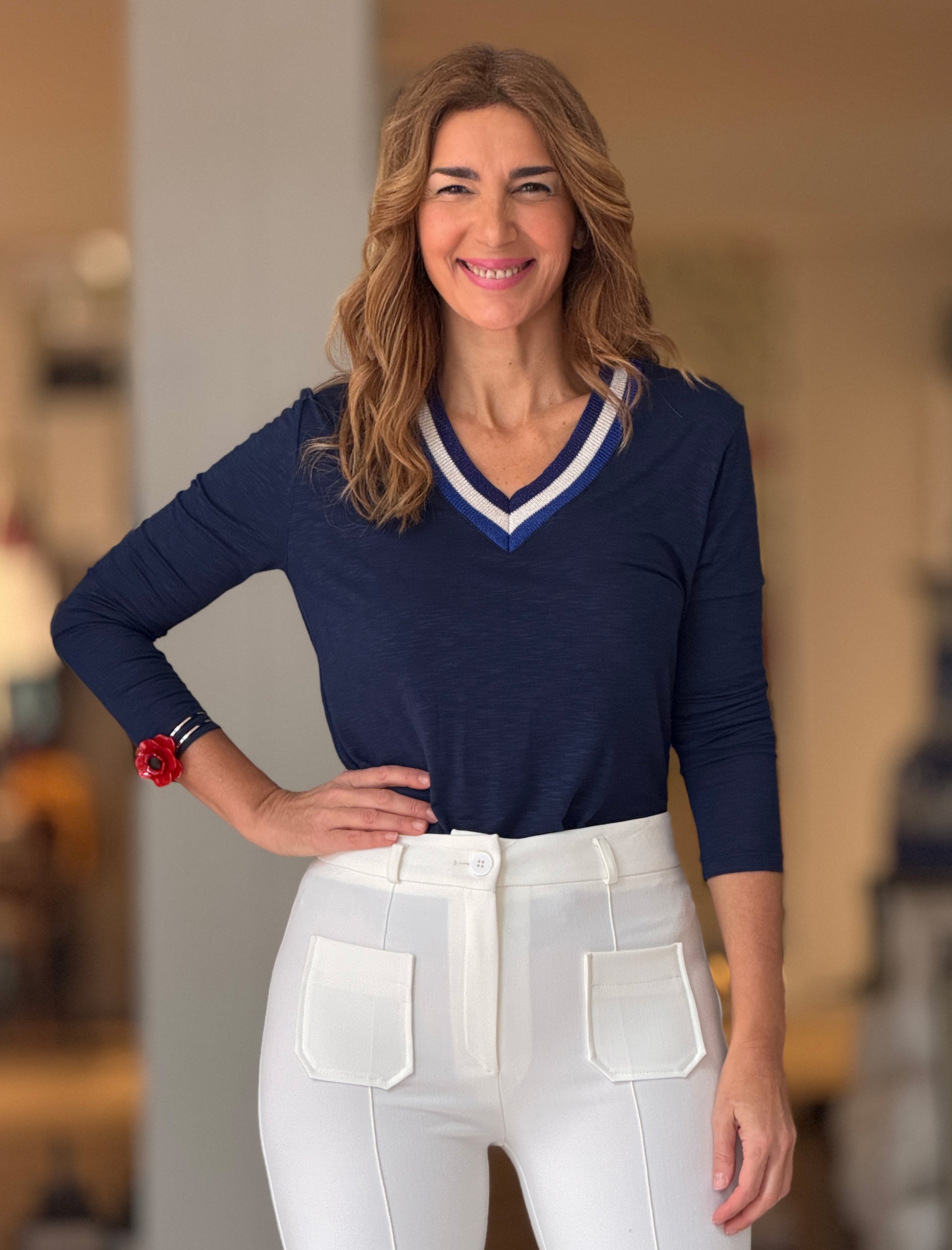 Camiseta marino cuello pico chic