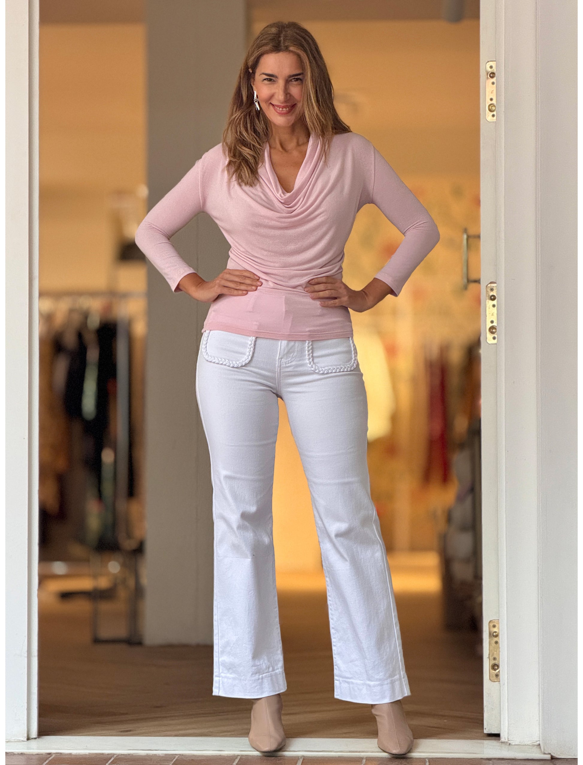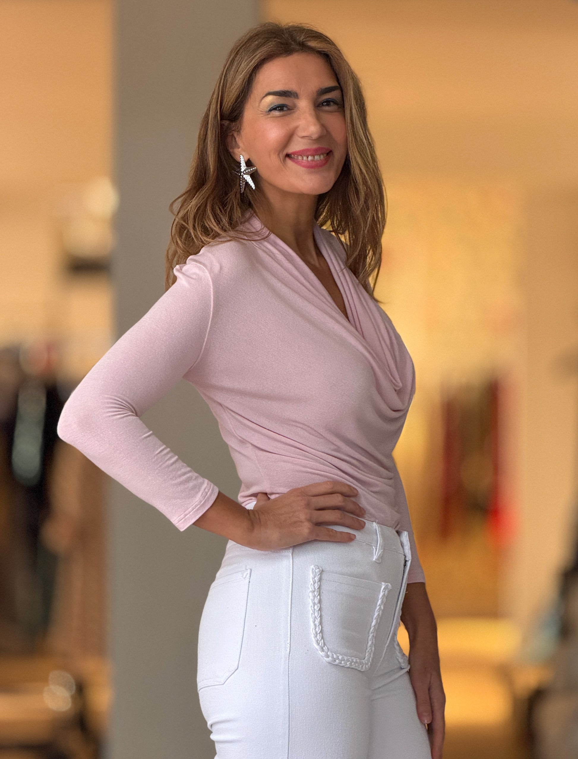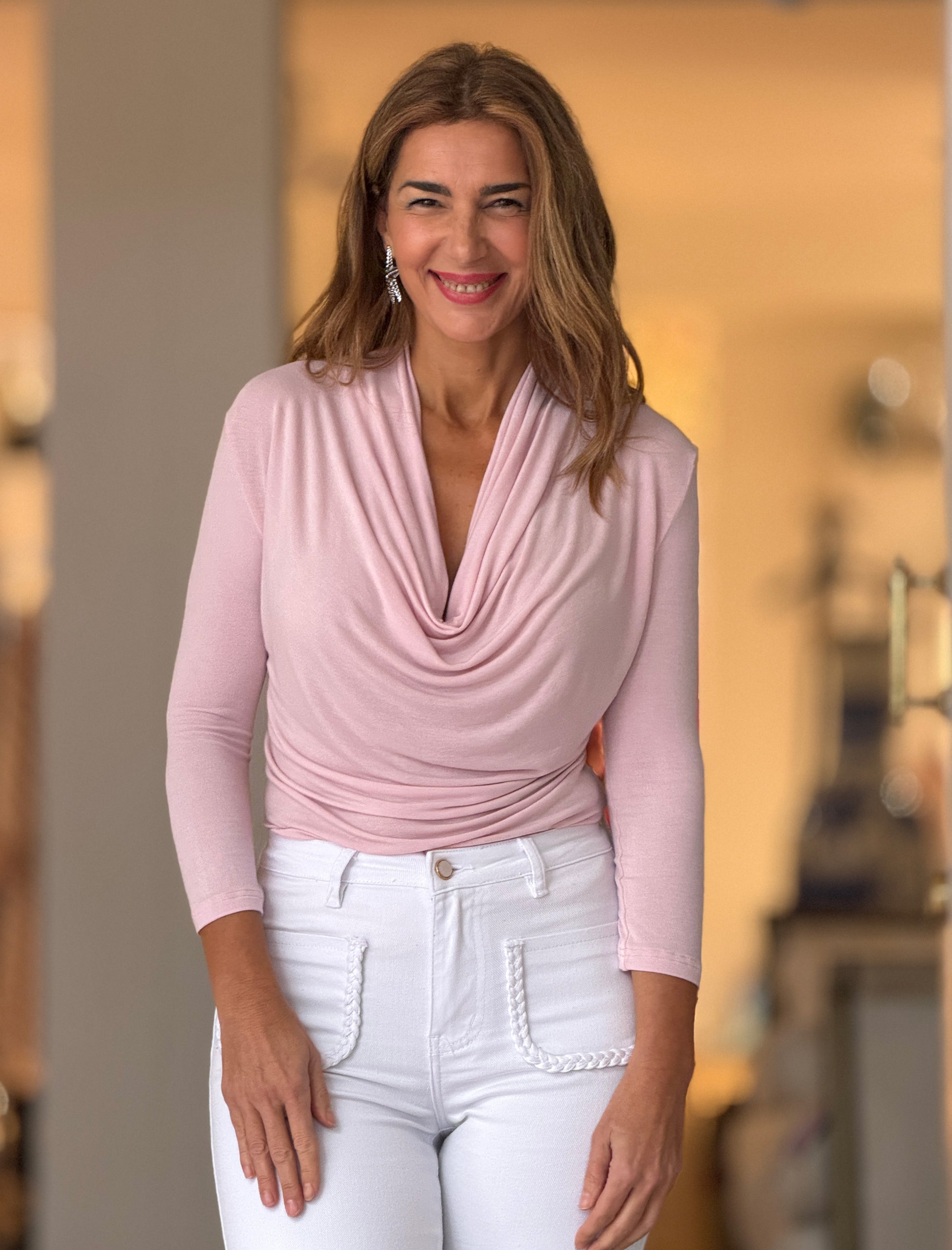 Camiseta drapeada de viscosa rosa