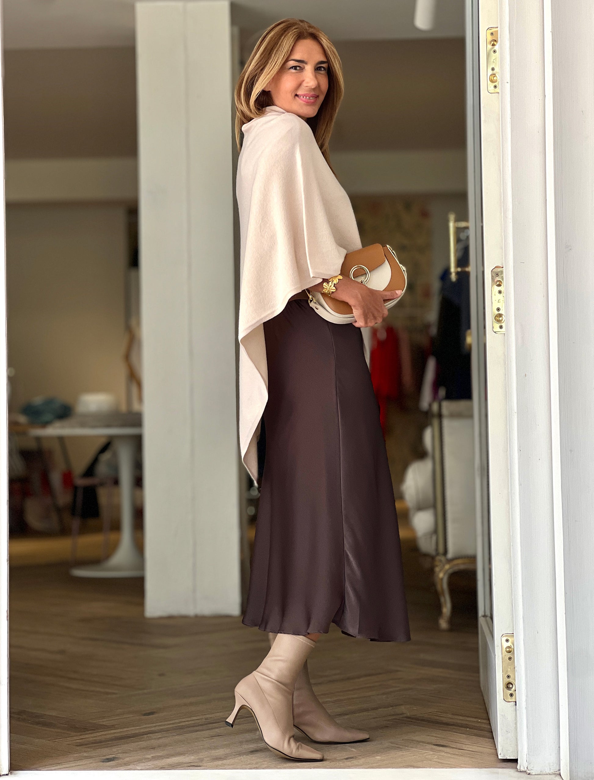 Capa Chic Deliciosa Beige es la prenda perfecta para aportar color y estilo a tus looks de entretiempo. Su tejido suave y fluido envuelve con elegancia, ofreciendo un movimiento favorecedor en cada paso. Con su diseño versátil es ideal para combinar con vestidos, pantalones o faldas, creando conjuntos muy chic.