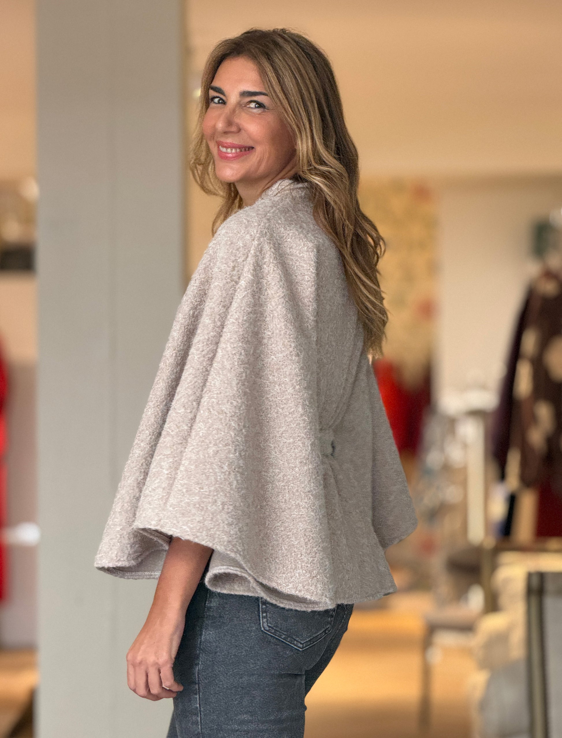 La Capa con cinturón suave arena es la prenda perfecta para elevar tus looks con estilo y comodidad. Su diseño de corte amplio y mangas tipo capa aporta un movimiento fluido y elegante, mientras que el cinturón ajustable permite definir la cintura y crear una silueta favorecedora. El tejido es muy suave al tacto, cálido y ligero, ideal para el entretiempo o para combinar sobre tus básicos favoritos.