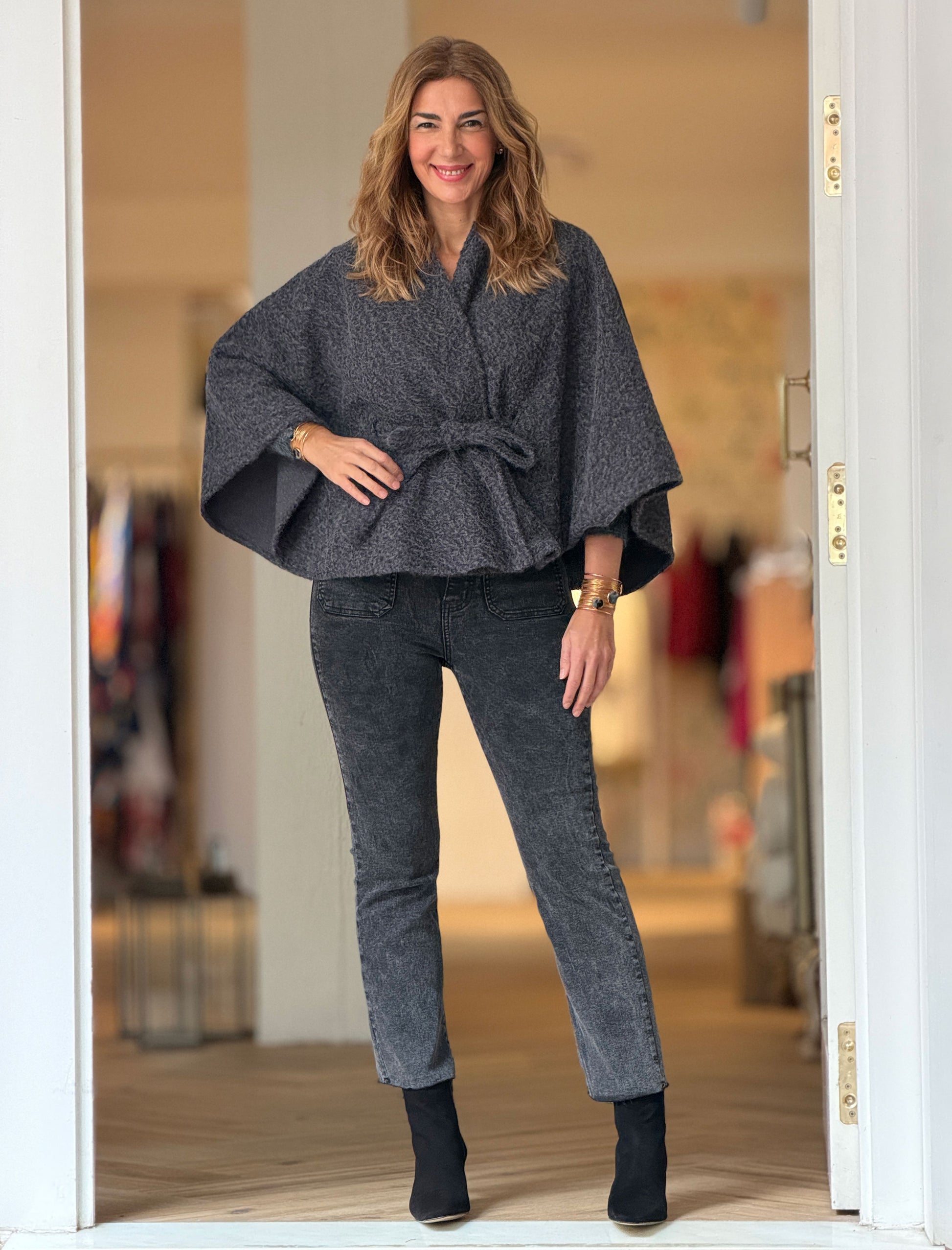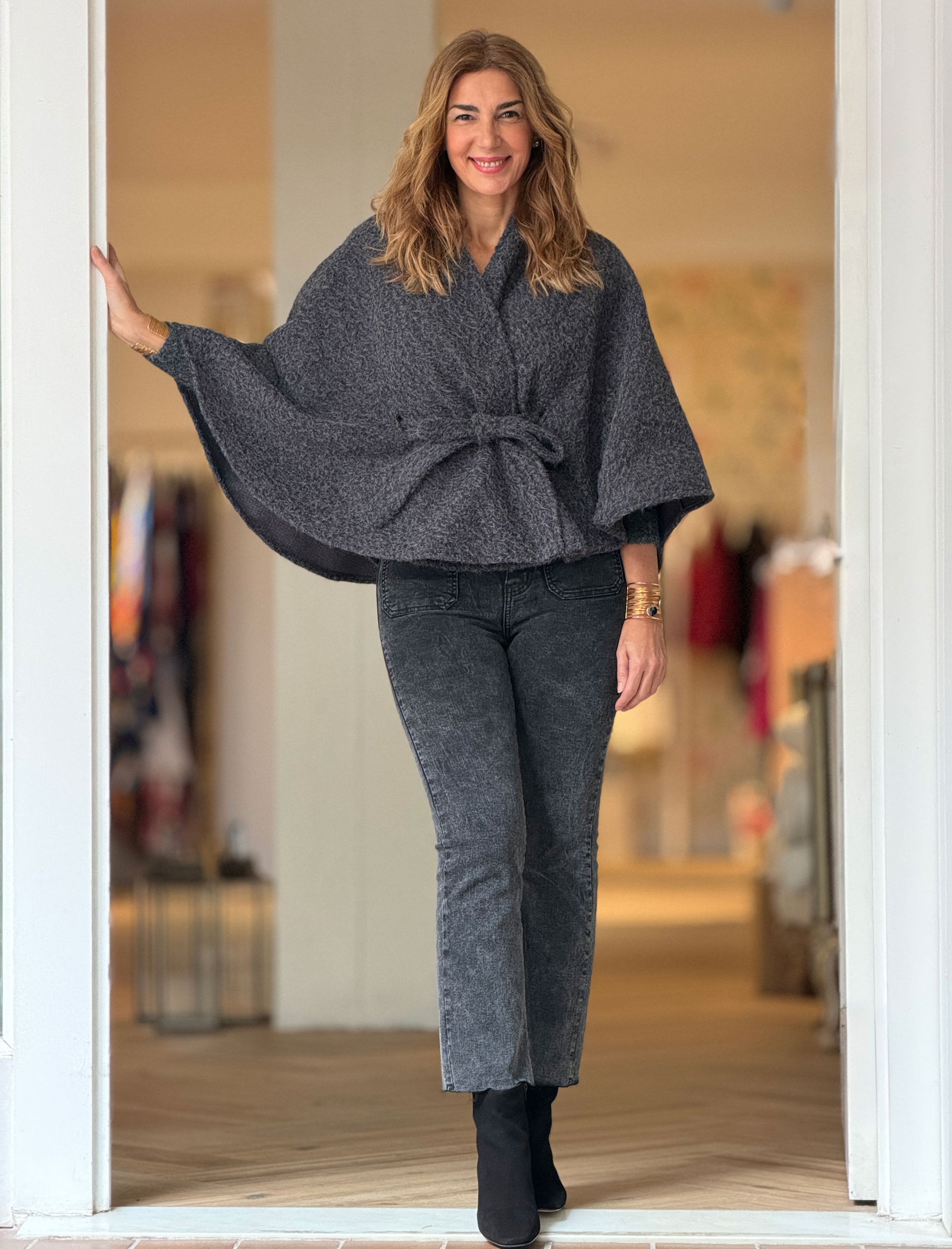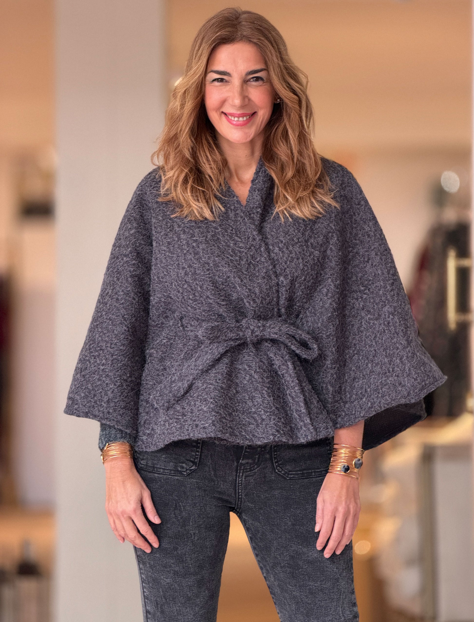 Capa con cinturón suave gris