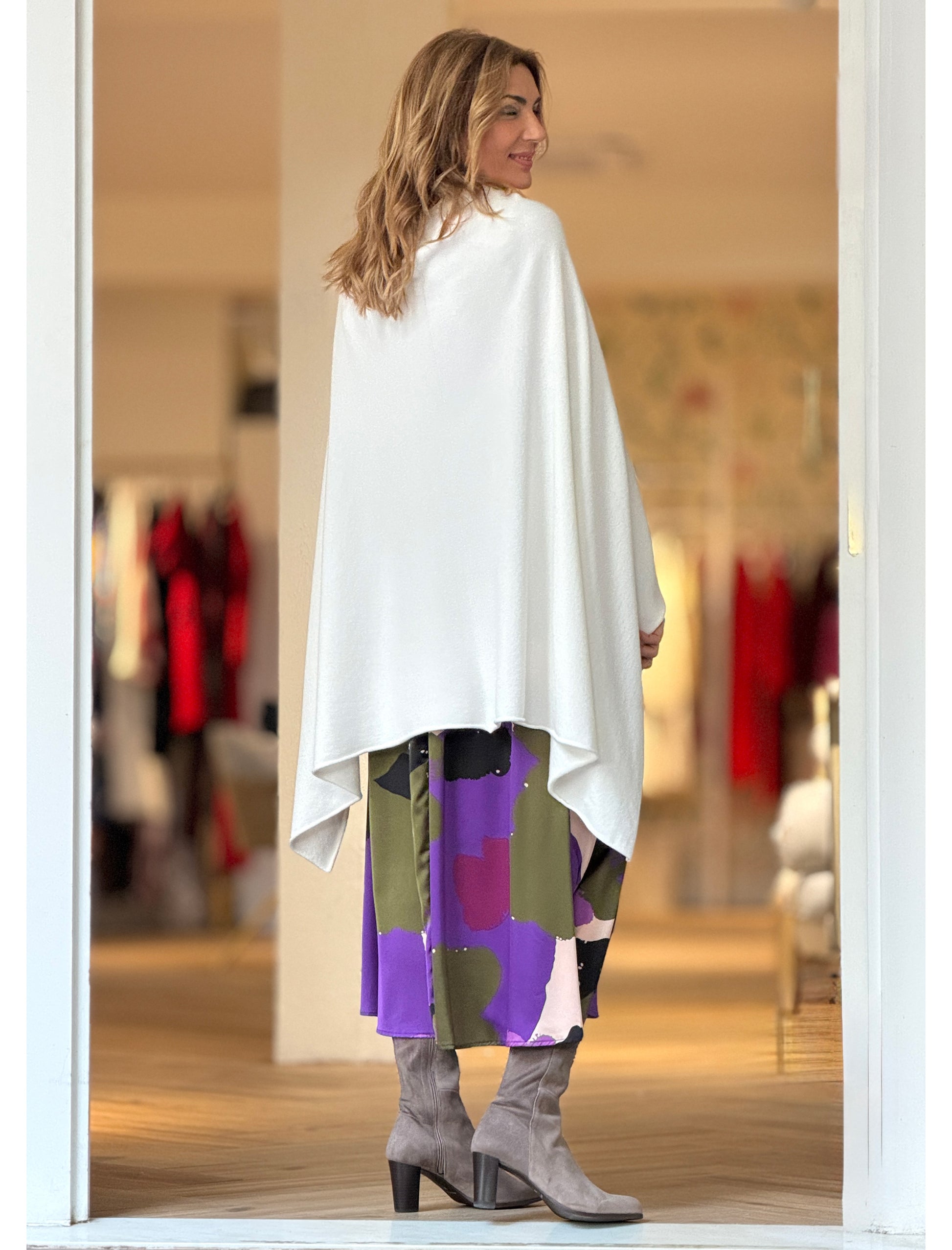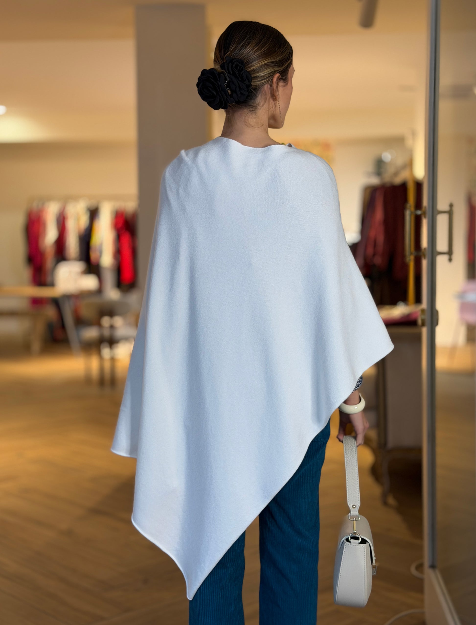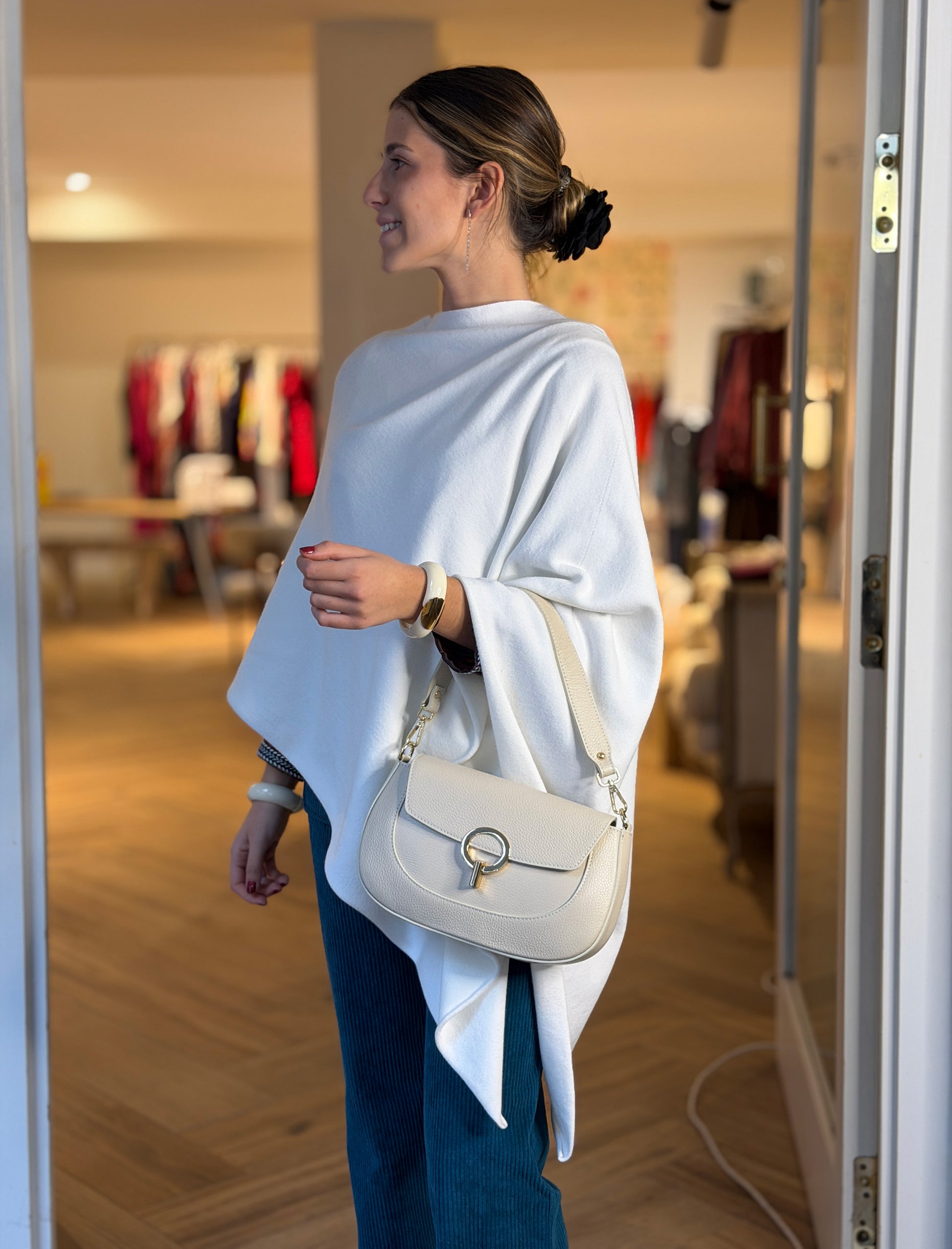 Capa de punto en tono blanca se convierte en una aliada perfecta cuando buscas abrigo ligero pero con un toque actual. El diseño te permite llevarla sobre camisas, jerséis o vestidos, creando looks con un aire moderno. Ideal para días en los que quieres comodidad, pero sin renunciar al toque chic que eleva cualquier conjunto.