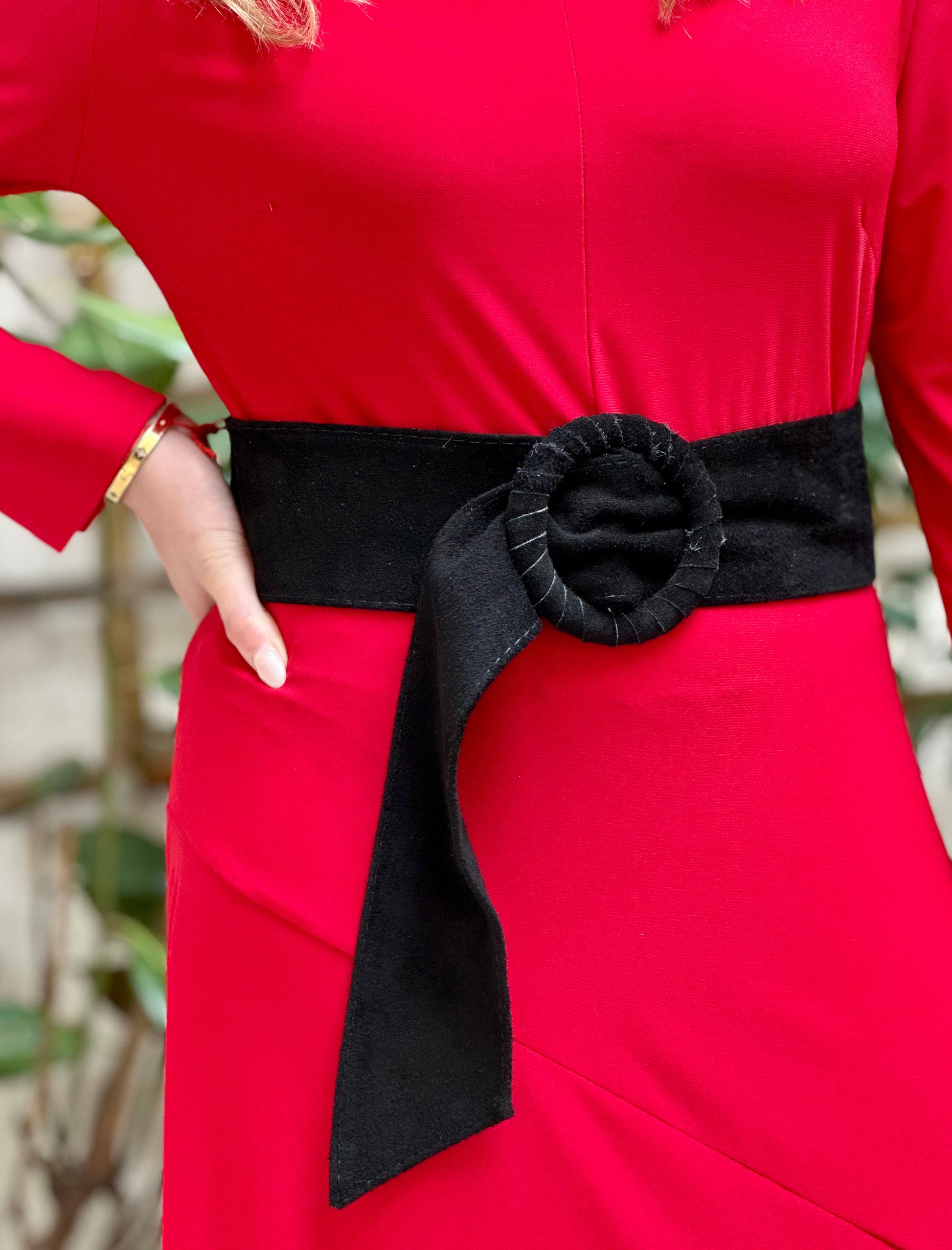 Este Cinturón Básico de piel negro combina elegancia y funcionalidad para elevar cualquier look. Su diseño sobrio con hebilla forrada en el mismo material lo convierte en un complemento versátil, ideal tanto para vestidos de evento como para estilismos del día a día.