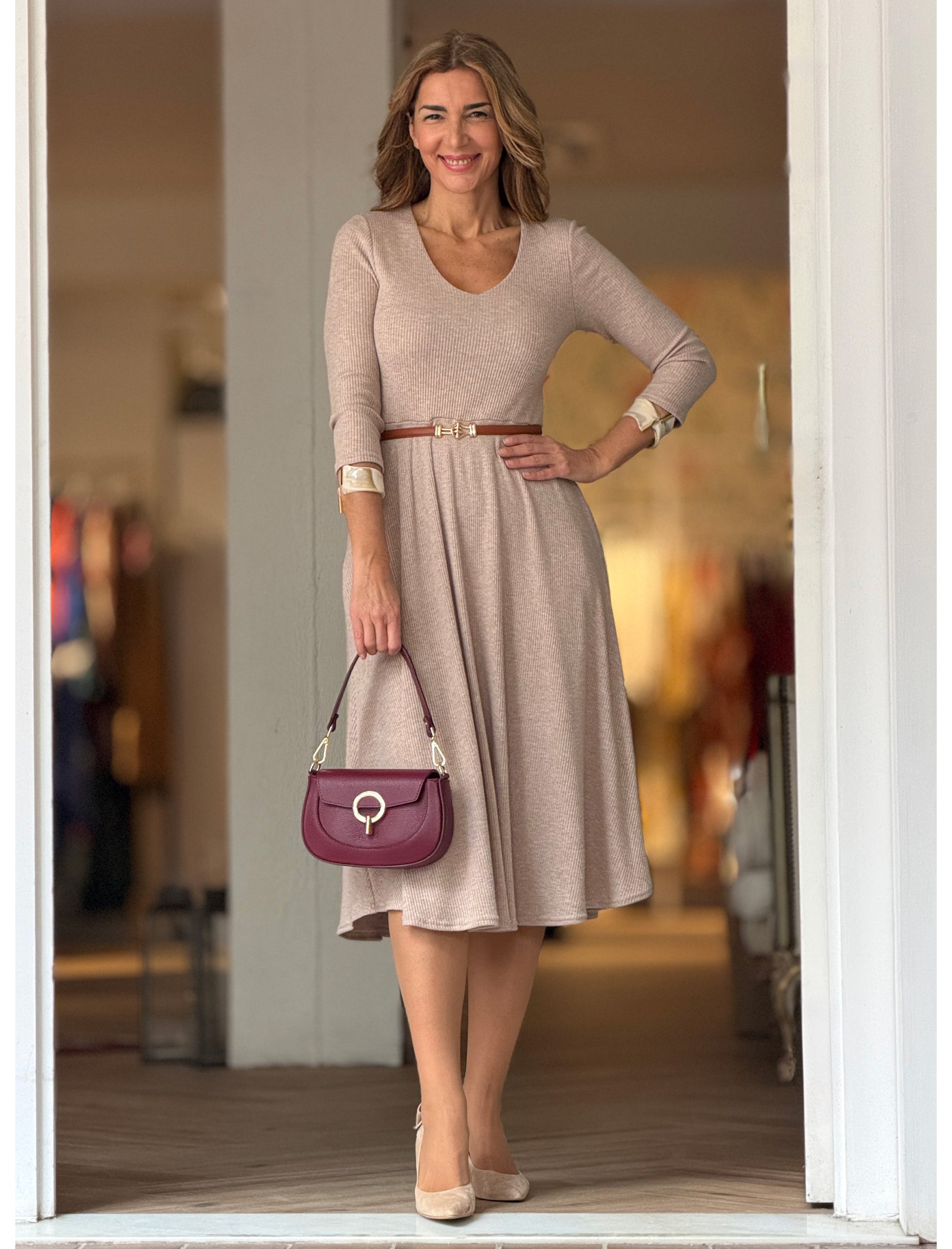 El cinturón fino hebilla chic cuero es sutil, elegante y muy favorecedor, marca la cintura sin recargar y aporta ese toque chic que tanto nos gusta. Se adapta cómodamente desde 75 cm hasta 92 cm, ajustándose perfectamente sin apretar. Su diseño fino (1,5 cm de ancho) lo convierte en el complemento ideal para vestidos, blusas, blazers o incluso para dar forma a un jersey amplio.