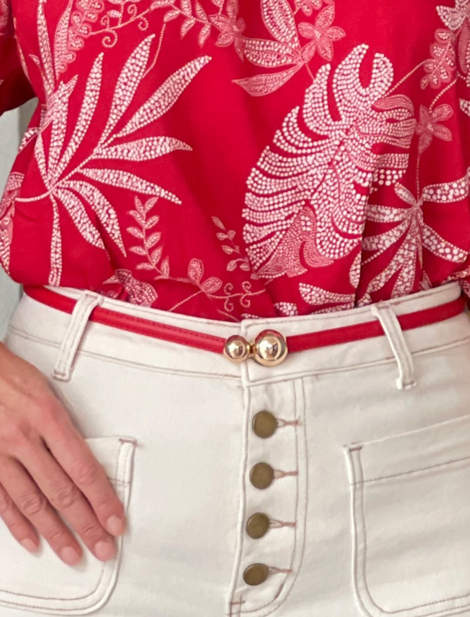 El Cinturón Fino Silverio Rojo está fabricado en piel de alta calidad. Su diseño fino y la hebilla con tono plateado lo hacen perfecto para realzar cualquier look, aportando un toque de elegancia a tu cintura.
