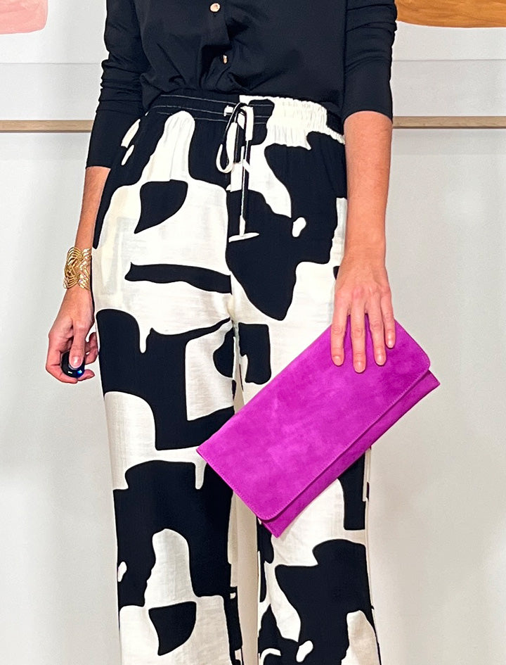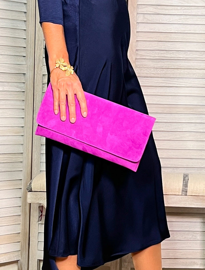 Clutch en piel con cadena interior.. Tamaño 30x15 cm aprox. Buscar una armonía en el conjunto no consiste en sobrecargarnos de complementos ni liberarnos de todos, sino en jugar a equilibrar la balanza. Si algo sobra, o no es imprescindible, ¿para qué llevarlo? Nunca iremos más guapas por llevar más accesorios, sino por llevar solo los adecuados y este clutch es uno de ellos.