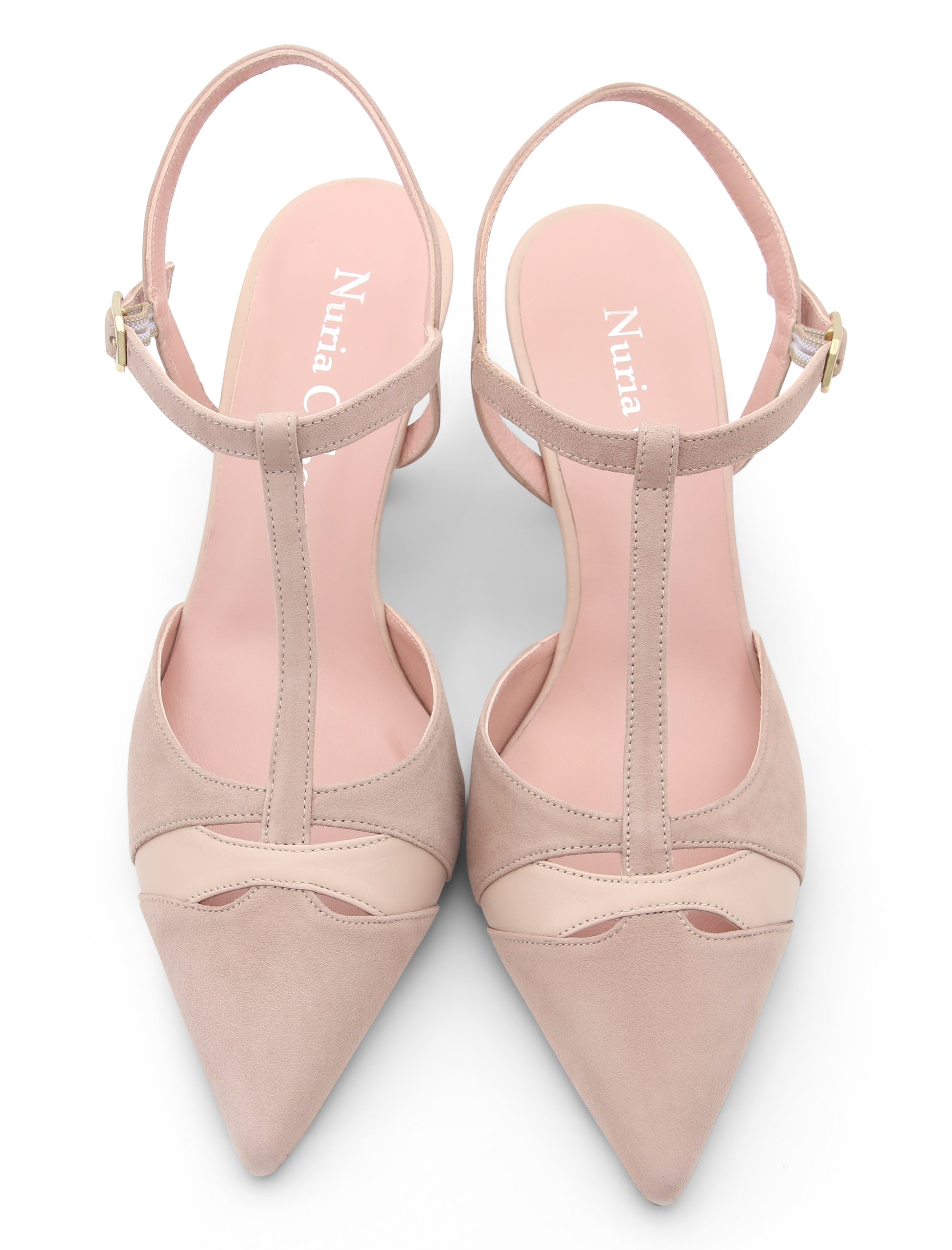 Salón destalonado en ante color nude combinado con piel color nude,está fabricado artesanalmente con las mejores pieles y es especialmente cómodo ya que tiene piso de goma y planta acolchada y una horma que sujeta perfectamente el pie.