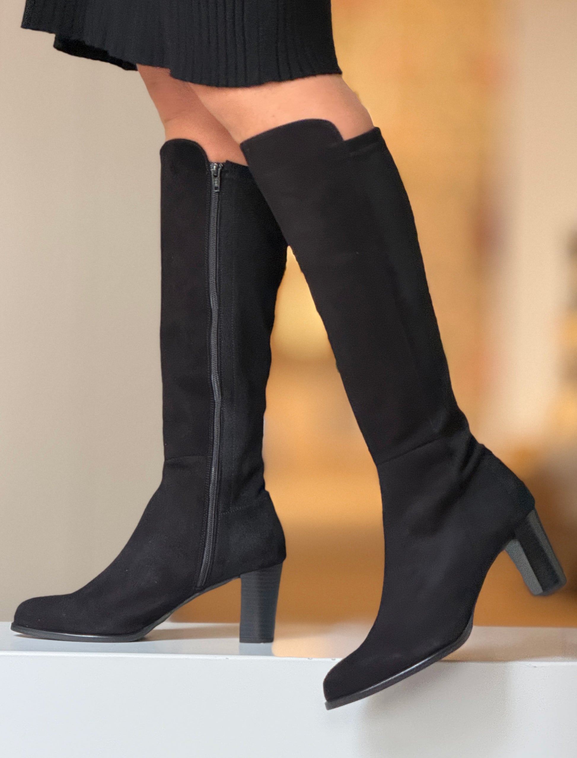 La Bota Goya Negro está diseñada para darte estilo y comodidad a partes iguales. Su tacón y su suela de goma gruesa aíslan del frío y la humedad, mientras que el cierre de cremallera oculto aporta un acabado elegante y práctico. La parte trasera de la caña en licra elástica, que se adapta suavemente a la pierna, realzando la silueta sin perder confort. Combina con vestidos, faldas y pantalones para un look sofisticado y cómodo.