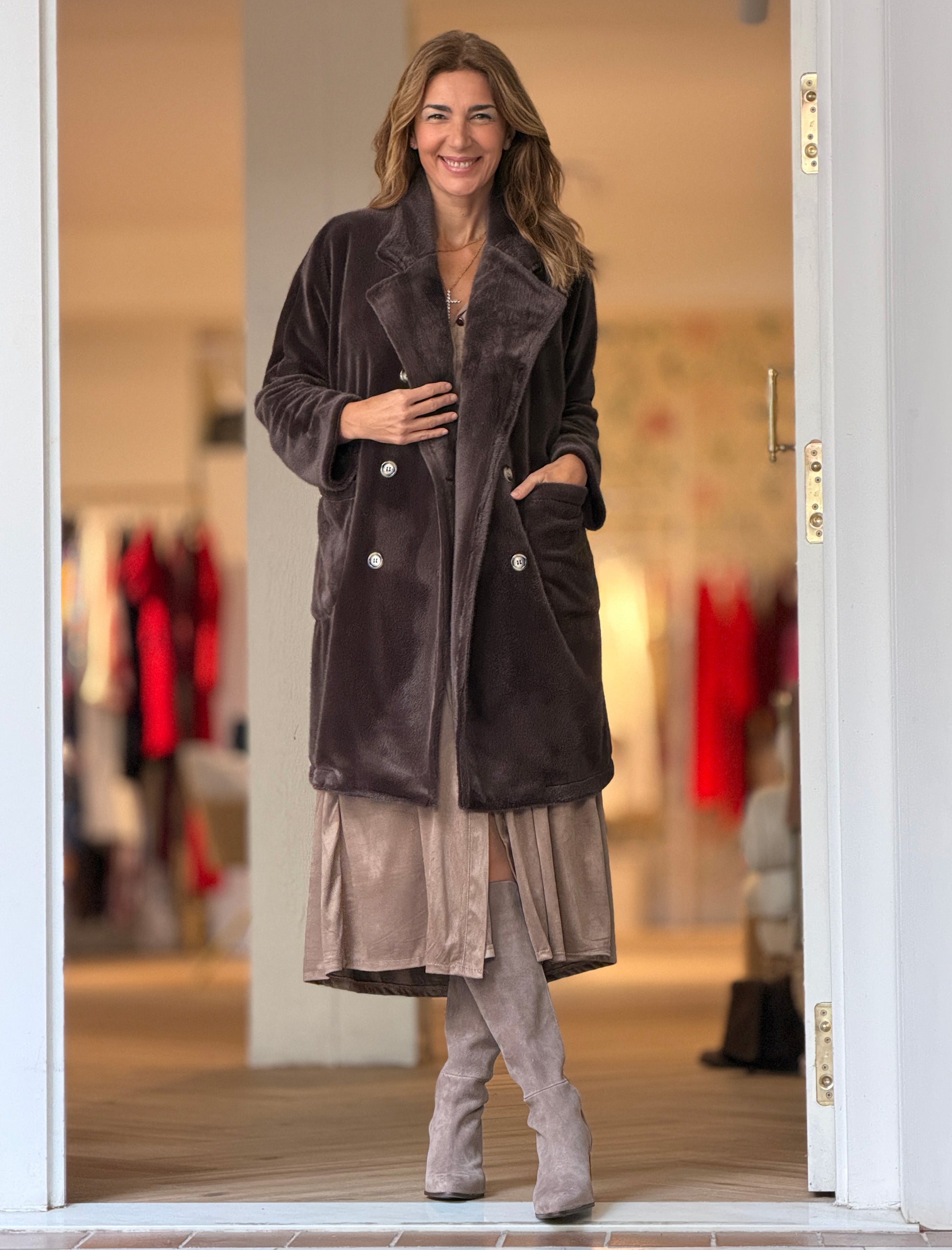 La Bota Goya Taupe está diseñada para darte estilo y comodidad a partes iguales. Su tacón y su suela de goma gruesa aíslan del frío y la humedad, mientras que el cierre de cremallera oculto aporta un acabado elegante y práctico. La parte trasera de la caña en licra elástica, que se adapta suavemente a la pierna, realzando la silueta sin perder confort. Combina con vestidos, faldas y pantalones para un look sofisticado y cómodo.
